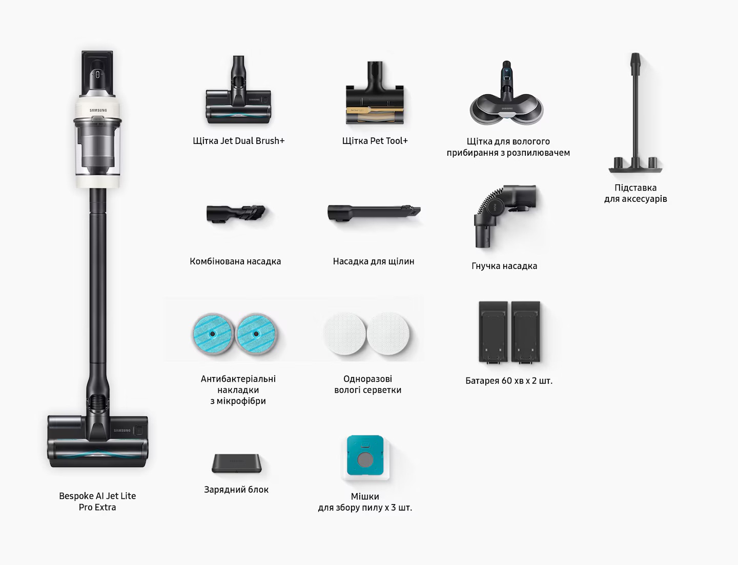 Щітки та насадки завжди будуть охайно зберігатися в єдиному місці - на підставці для аксесуарів. Це забезпечить порядок у вашій оселі та доступність необхідних предметів у будь-який момент. Підставку можна перенести у зручне місце, де вона буде доречною і не заважатиме вам у повсякденному житті. Завдяки окремому зарядному модулю для акумулятора ви можете заряджати додаткові акумулятори в будь-якому місці.