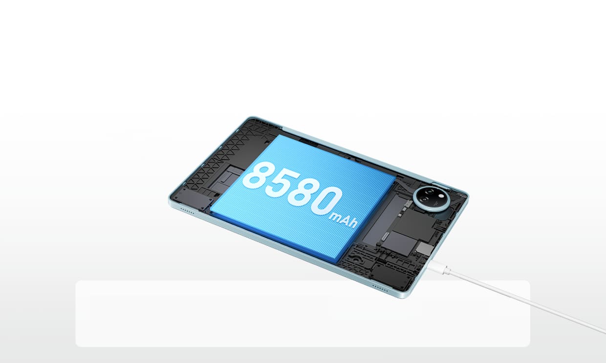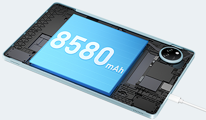 Акумулятор ємністю 8580 мА·год дозволяє користуватися планшетом довго без частого підзаряджання. Онлайн-уроки, перегляд фільмів, серфінг в інтернеті чи робота — залишайтеся на звʼязку весь день без перерв.