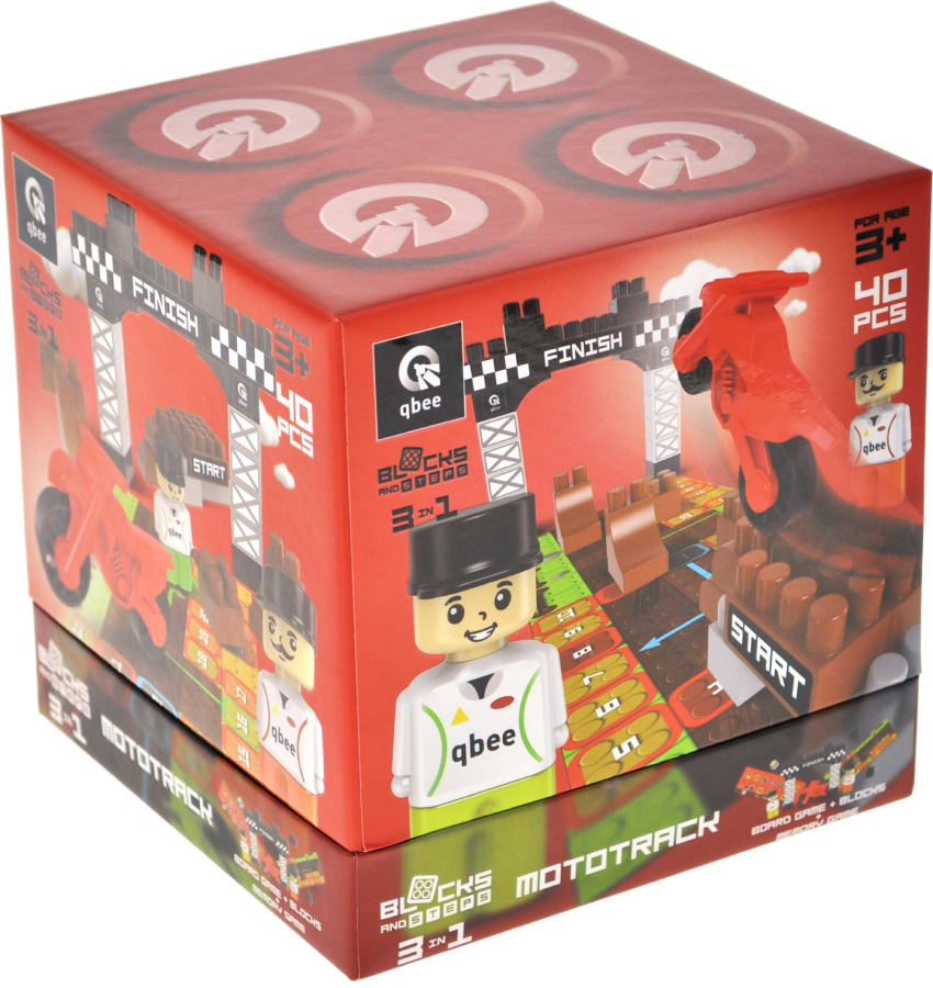 Пластиковий конструктор qbee "Block&Steps: Мототрек" + ходилка і меморі гра 3в1, 40дет. (QB300-103)