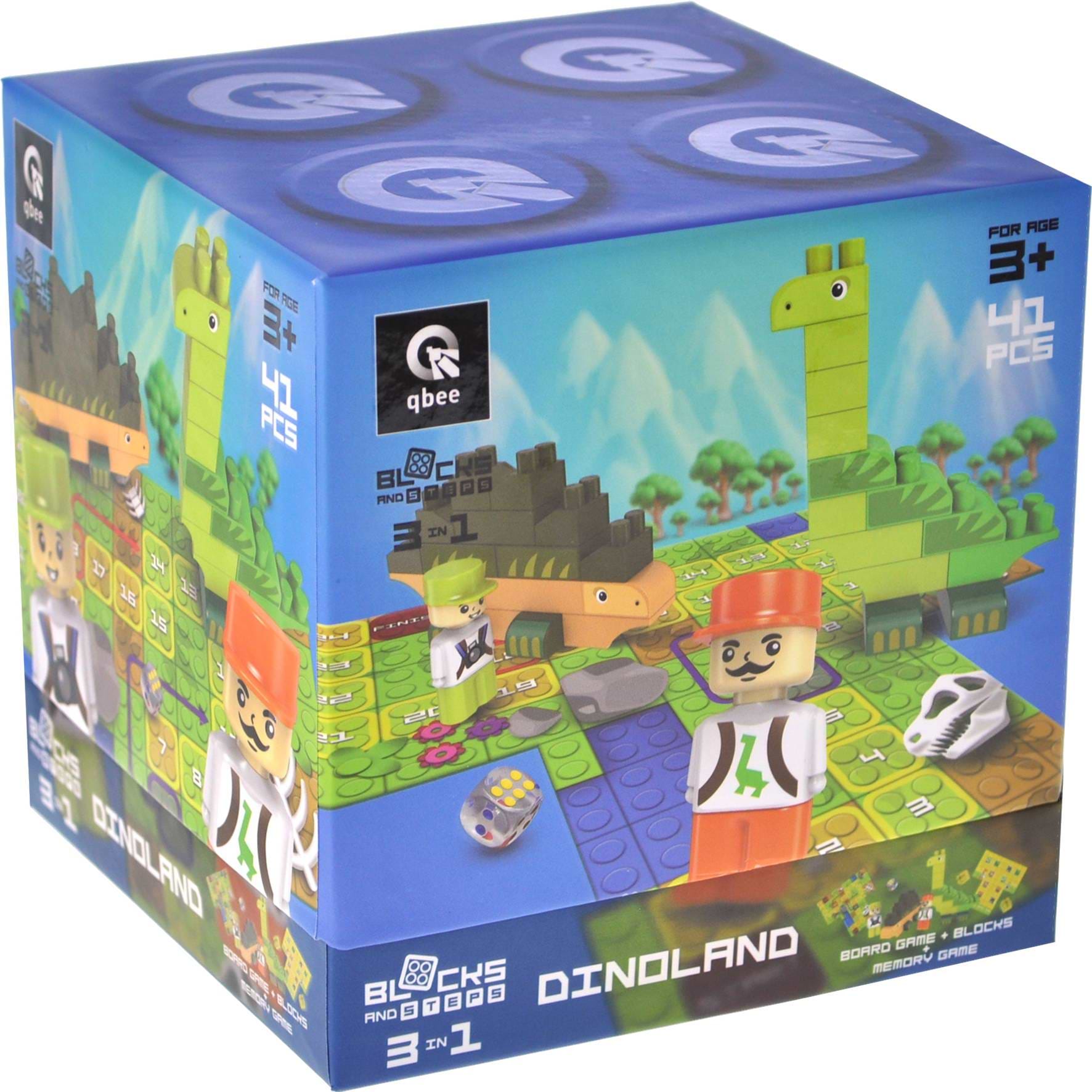 Пластиковий конструктор qbee "Block&Steps: Земля динозаврів" + ходилка і меморі гра 3в1, 41дет. (QB300-101)