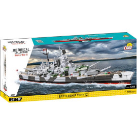 «Тірпіц» — німецький лінкор часів Другої світової війни, спущений на воду 1 квітня 1939 року. Він був кораблем-близнюком лінкора «Бісмарк» і найбільшим підрозділом Кригсмаріне в 1941–1944 роках. Досяг бойової готовності у вересні 1941 р. Потоплений 12 листопада 1944 р. поблизу норвезького Тромсе британськими ВПС. Модель корабля, створена компанією COBI, виготовлена в масштабі 1:300. Вона складається з 2810 елементів і має довжину 87 см. Завдяки використанню новітніх доступних елементів і передових методів будівництва, модель точно відображає пропорції історичного корабля і зберігає всі його основні елементи, включаючи оригінальний, дуже характерний камуфляж. Він має численні рухомі частини, такі як гвинти, рулі, обертові вежі та стволи гармат, які можна піднімати та опускати. У набір також входить дуже стійка та естетична чорна підставка для демонстрації з табличкою з назвою корабля. Оскільки це велика і досить складна модель, ми рекомендуємо її в основному досвіченим колекціонерам.