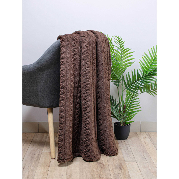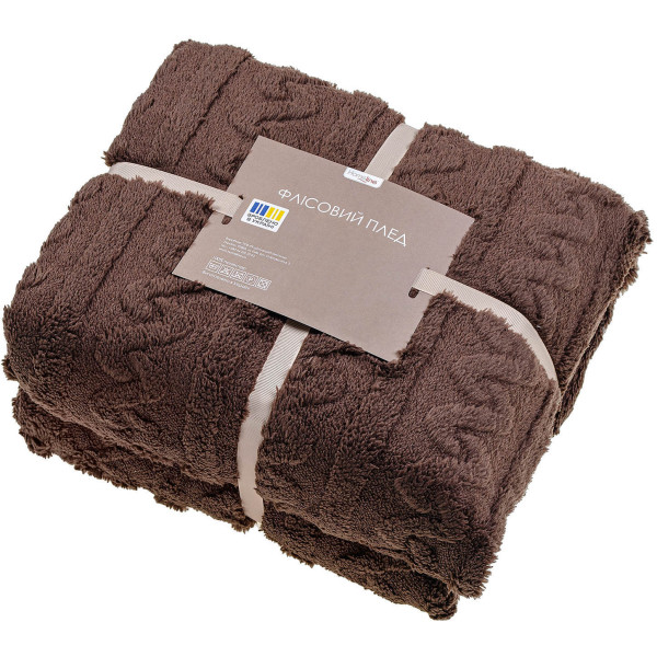 Плед полуторний Home Line ФЛІСОВИЙ 150х195 ФЛ. ПРИНТ Щ310 ЖАКАРД КОСА ШОКОЛАДНИЙ (187284)