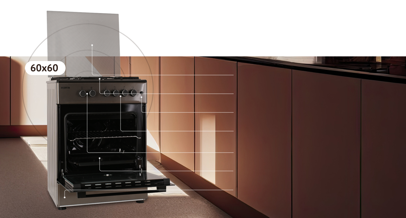 Всі плити Grifon оснащені функцією газ-контролю. Це означає, що витік газу при затуханні газової конфорки виключений, подача газу припиняється одразу при затуханні полум’я.