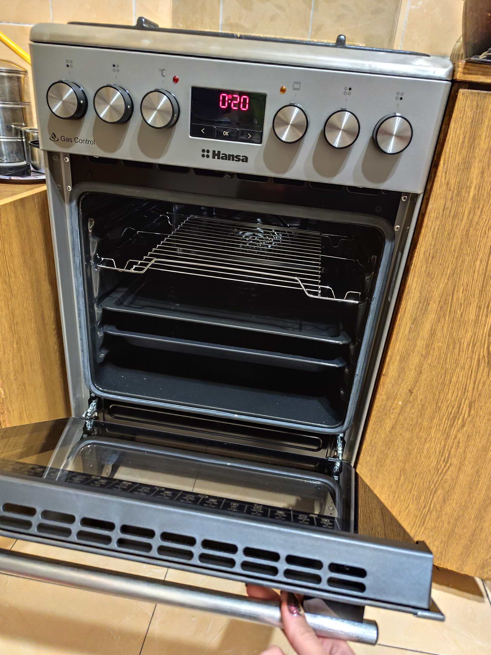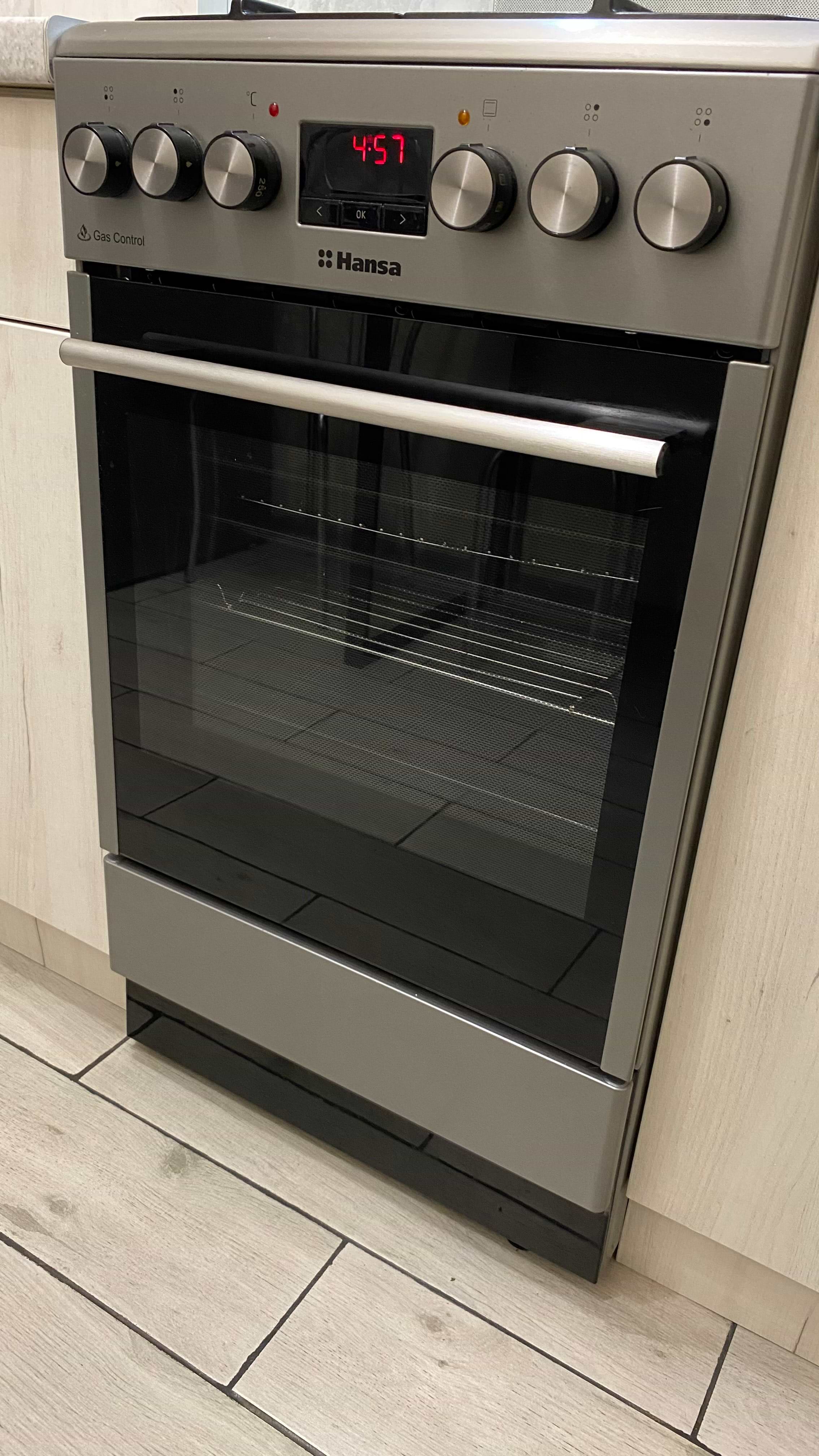 Це вже друга Hansa в нашій родині.Першу купували батькам,та під впливом іх вражень свекровь тєж захотіла собі.В духовці пекти пирог та запікати м'ясо одне задоволення.Таймер е,кілька режимів е,а з підсвіткою-все дуже гарно виглядає,та бачишь весь процесс приготування.Сучасний зовнішній вигляд-це тєж важливо.Поки мінусов не знайшли.