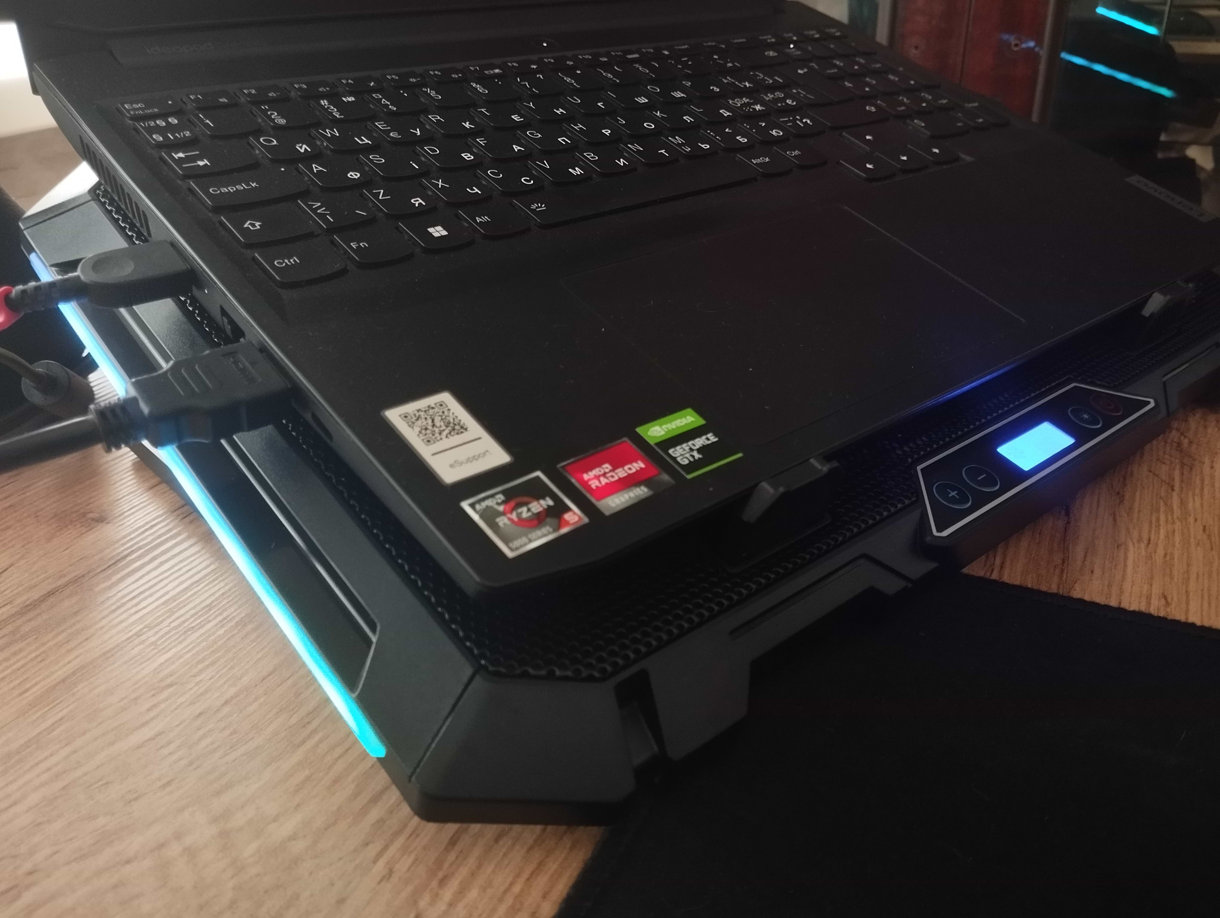 гарно справляється з охолодженням ноута, має різнокольорову підсвітку, не дуже шумна