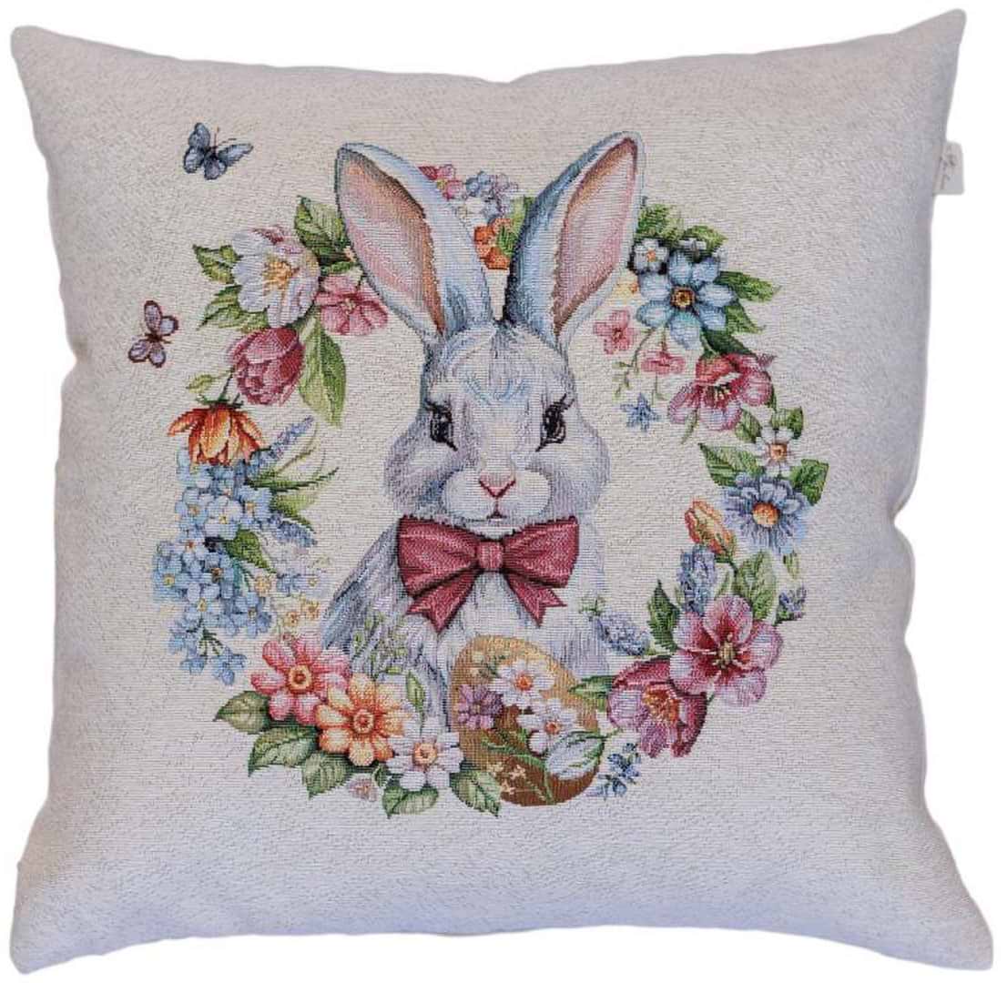 Подушка декоративна Прованс Великодня гобеленова Суцвіття зайченя у віночку 45х45 см (044296)