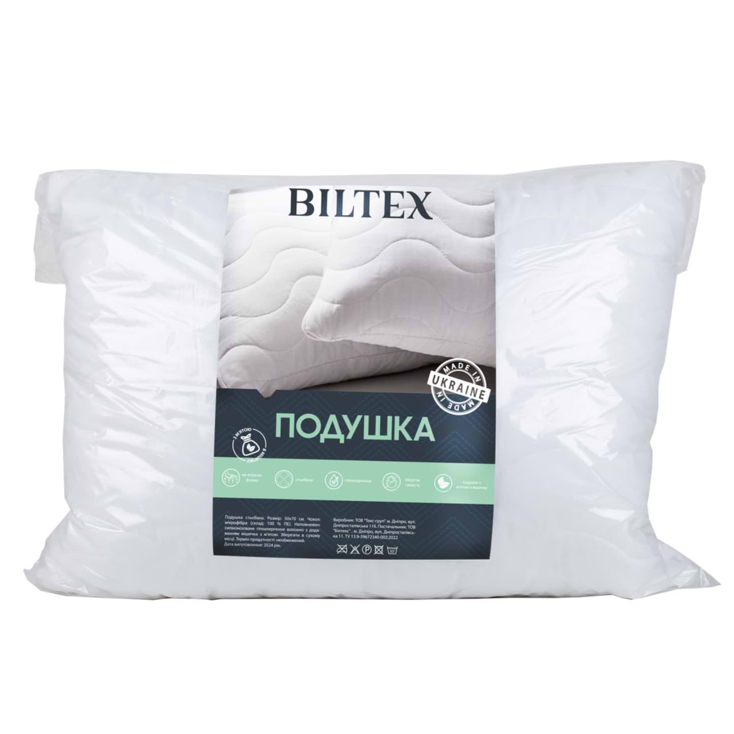 Подушка стандартна Biltex стьобана з мішечком м҆яти 50х70