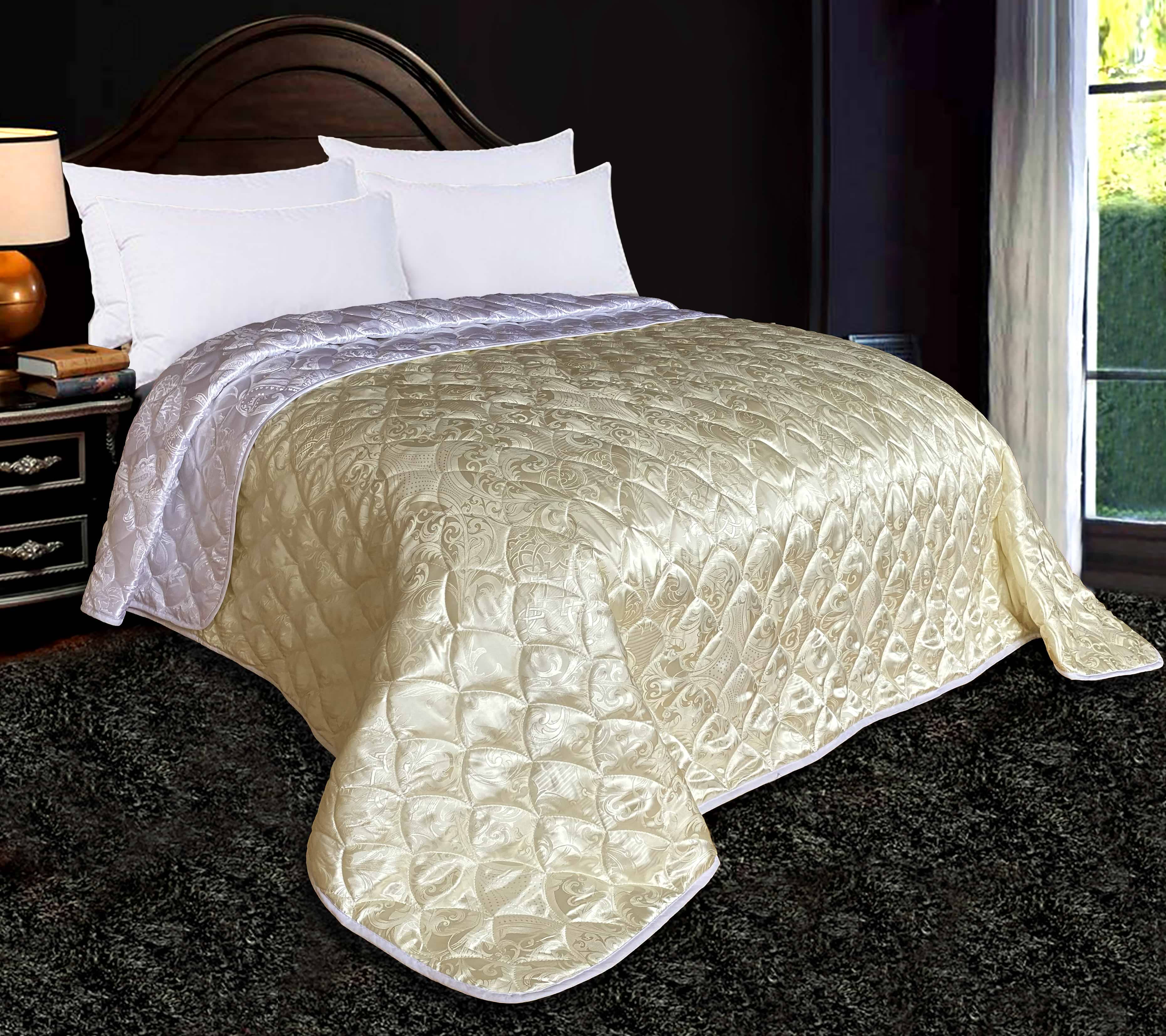 Покривало двоспальне Zastelli жаккардове Перлина JQ11/JQ10 двостороннє стьобане 240х260 см Молочний / Білий (20703)