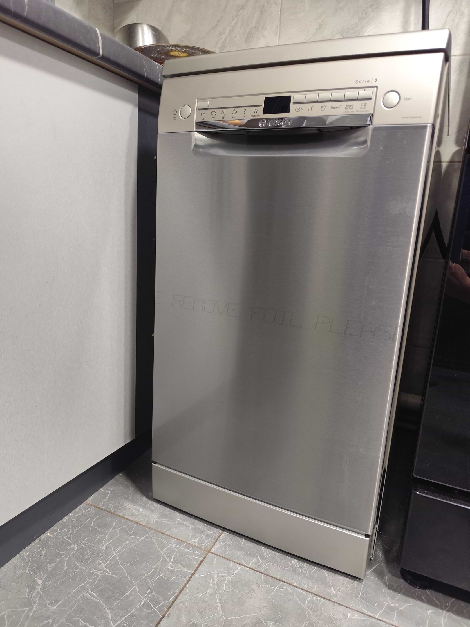 Гарно малогабаритна посудомийка, займає мінім місця, приносе максимум задоволення) Гарно вимиває посуд, є багато додаткових можливостей через додаток "Home Connect"