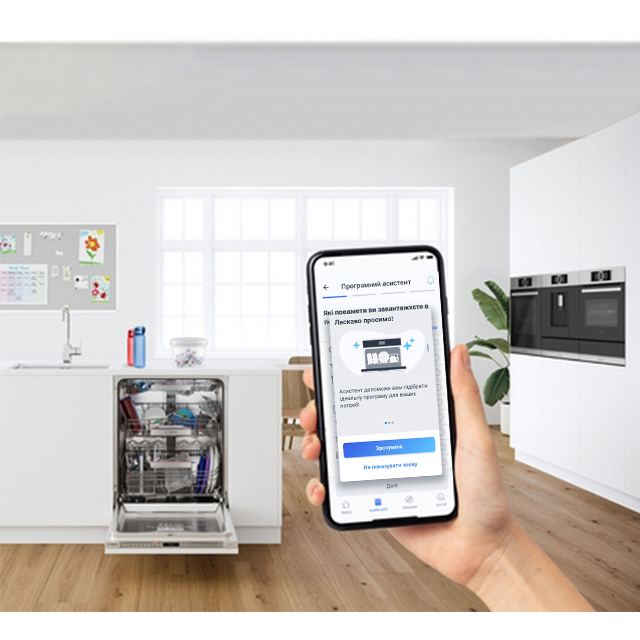 Функція програмного асистента в застосунку Home Connect позбавляє вас від необхідності вгадувати, яка програма найкраще впорається з посудом, який ви щойно завантажили в машину. Просто вкажіть ступінь забруднення, тип і кількість посуду — і асистент порекомендує відповідну програму.