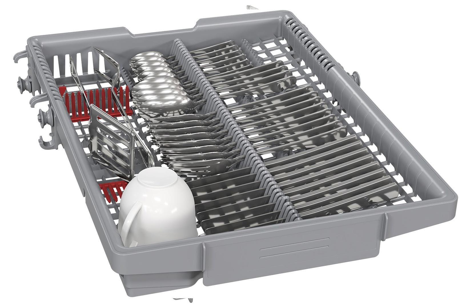 Короб VarioDrawer* – це додатковий рівень у верхньому відділі посудомийної машини для розміщення столових приборів та невеликого кухонного начиння, як-от черпака, віничка, малих чашок для кави. Це звільняє нижній короб від кошика для приборів і залишає більше місця для іншого посуду.