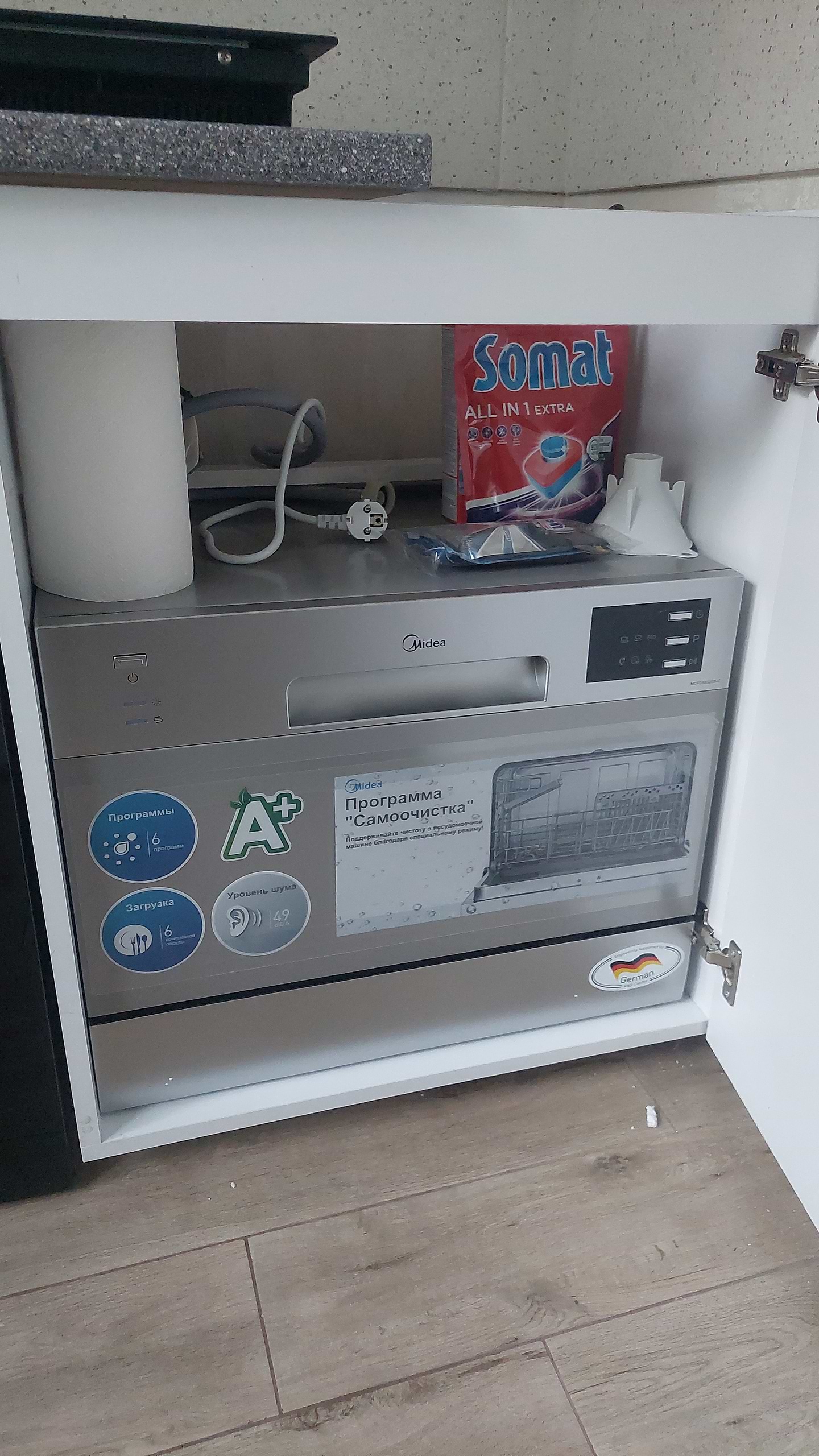 Були сумніви стосовно вибору саме цього бренду, бо все-таки Міdea чисто китайський бренд. До цього була аналогічна посудомийка ВЕКО. Але ціна, відгуки та сірий колір перемогли. Система управління максимально проста. Для сім'ї з двох людей вона ідеальна, миємо посуд 1 раз на добу. Поки все подобається, сподіваюся, що прослужить довго.