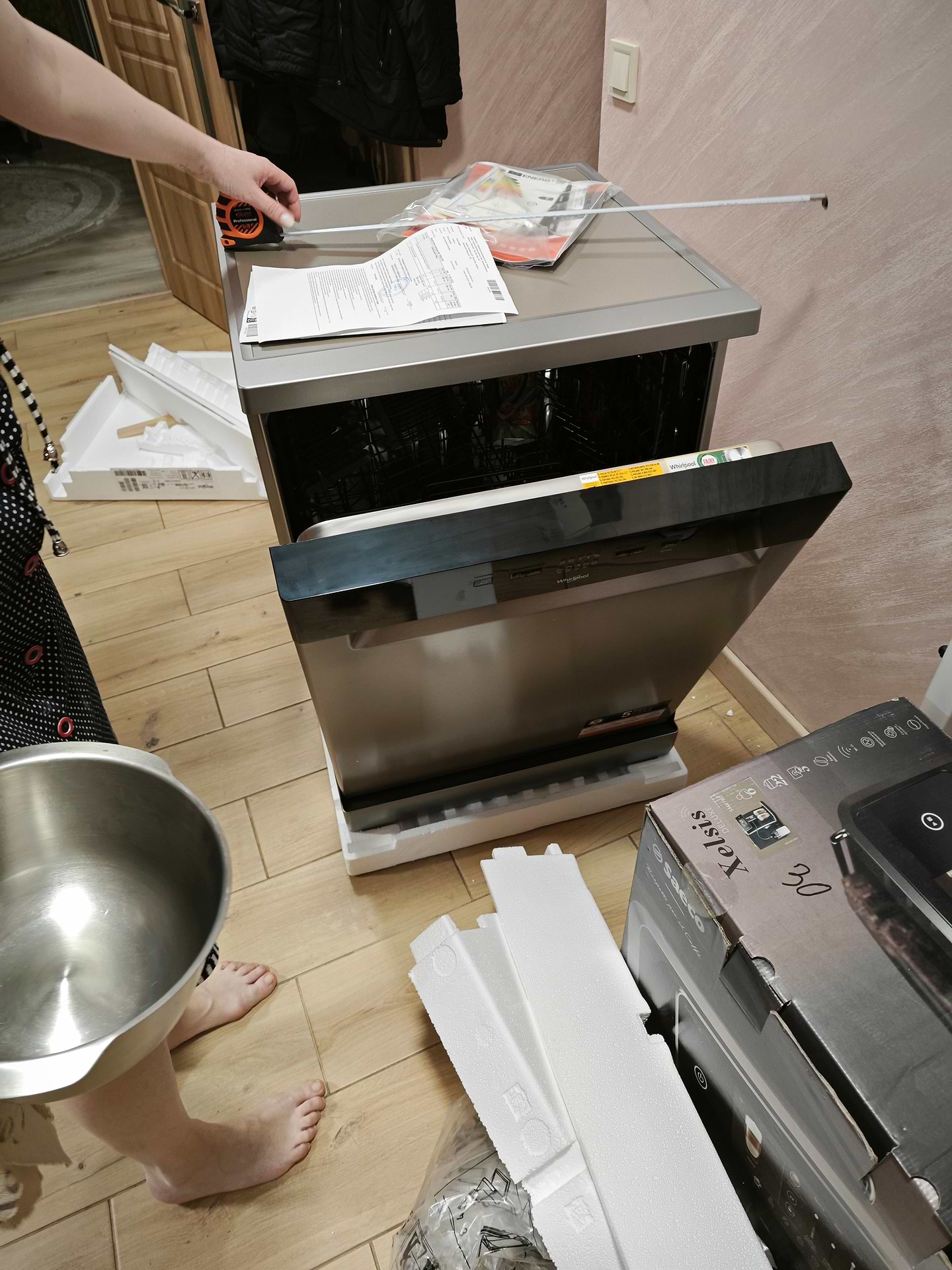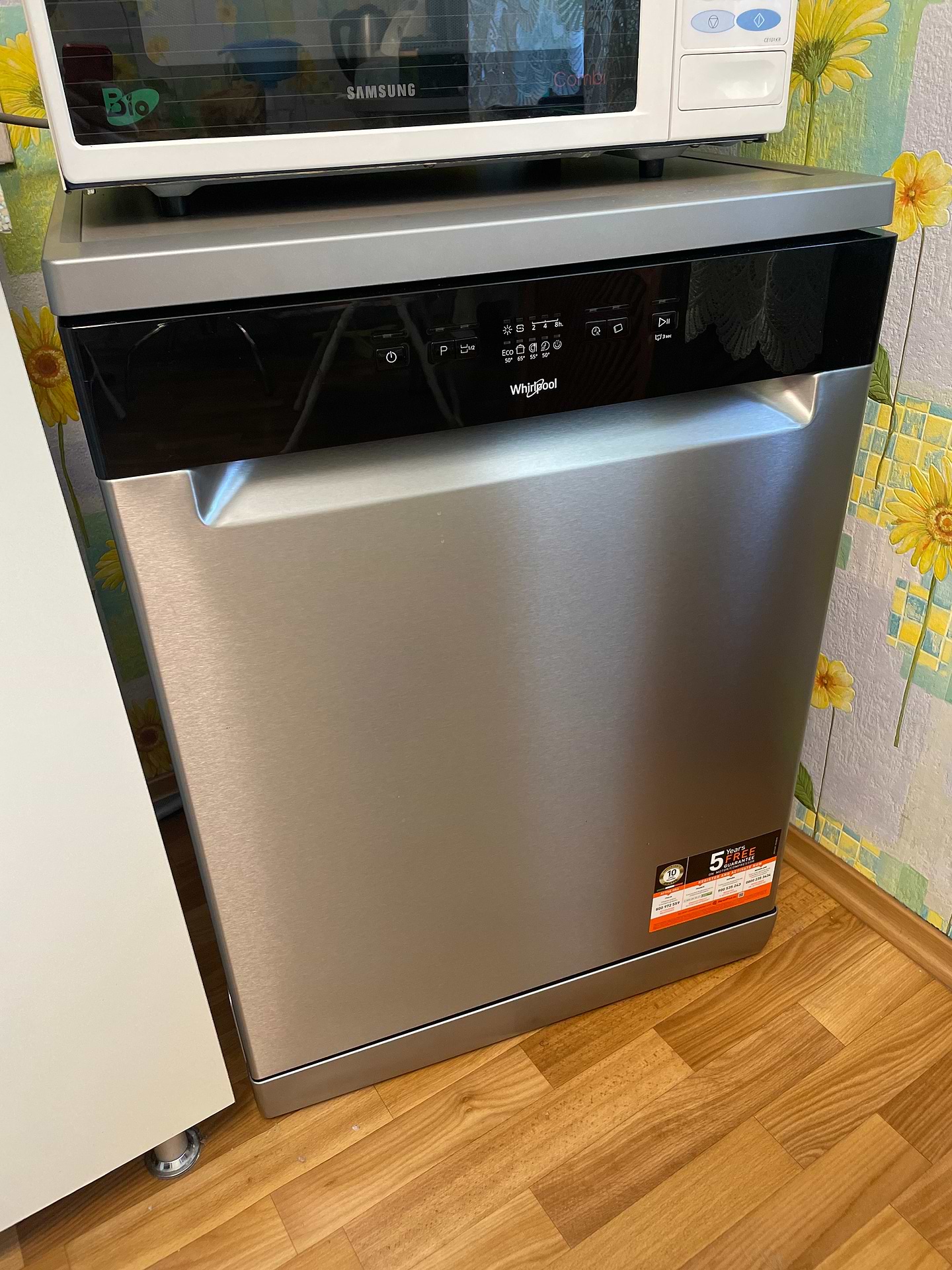 Купив посудомийну машину окремостоячу Whirlpool WFE2B19X так як не врахував місце на кухні. Всередині досить простора, не морочуся з укладанням брудного посуду. Зручна функція, половина завантаження та можливість регулювання верхньої полки. Працює не дуже голосно, є швидка мийка. А ще, дякую Comfy за доставку 1грн ні до під'їзду, а до квартири.