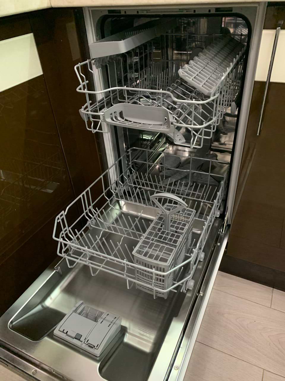 Ідеально миє посуд, навіть з засохшим брудом. Супер тиха. Ідеально сушить посуд.