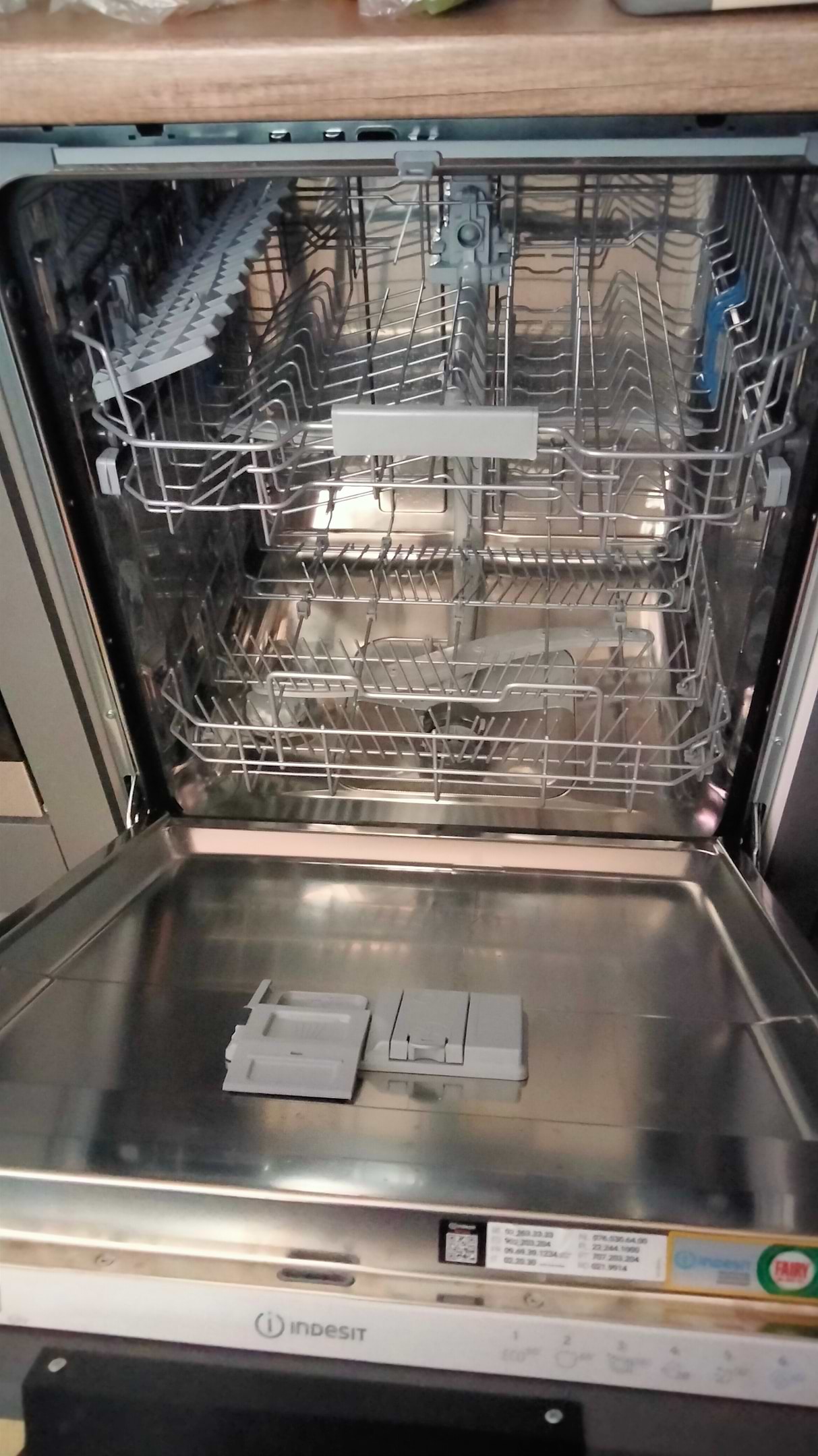 Чудова посудомийка. Все робили по інструкції. Спочатку засипали майже 1кг солі(купляла її в Єві). Білих розводів немає,посуд блищить,вимиває гарно. Я користуюсь найкоротшим режимом 28хвилин, це без сушки. Завантажую перед сном, потім на ніч залишаю відкритою і зранку сухий посуд розкладаю. Рекомендую кожній господині таку помічницю. Мені з дітьми , коли часу і так не вистачаю це реально допомога