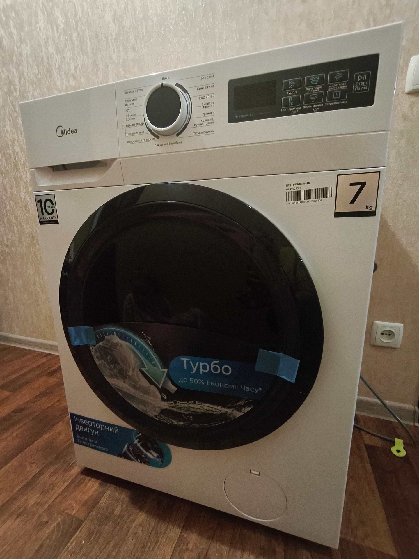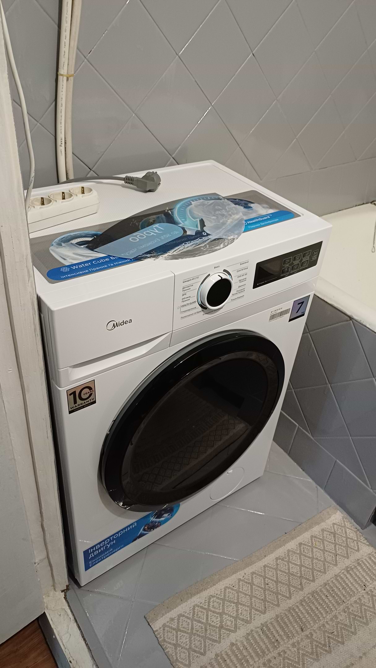 Отримав з браком тож довелося задіяти сервісний центр midea. Трохи неприємно було мати помилку на екрані та через підхід до роботи у сервісу (загалом - задовільно). Але оскільки війна та є важливіші питання , то вирішив залишити цю машину. Бо сподобалася. У комплекті якісний, але короткий штанг підключення води. Близько 1 м.