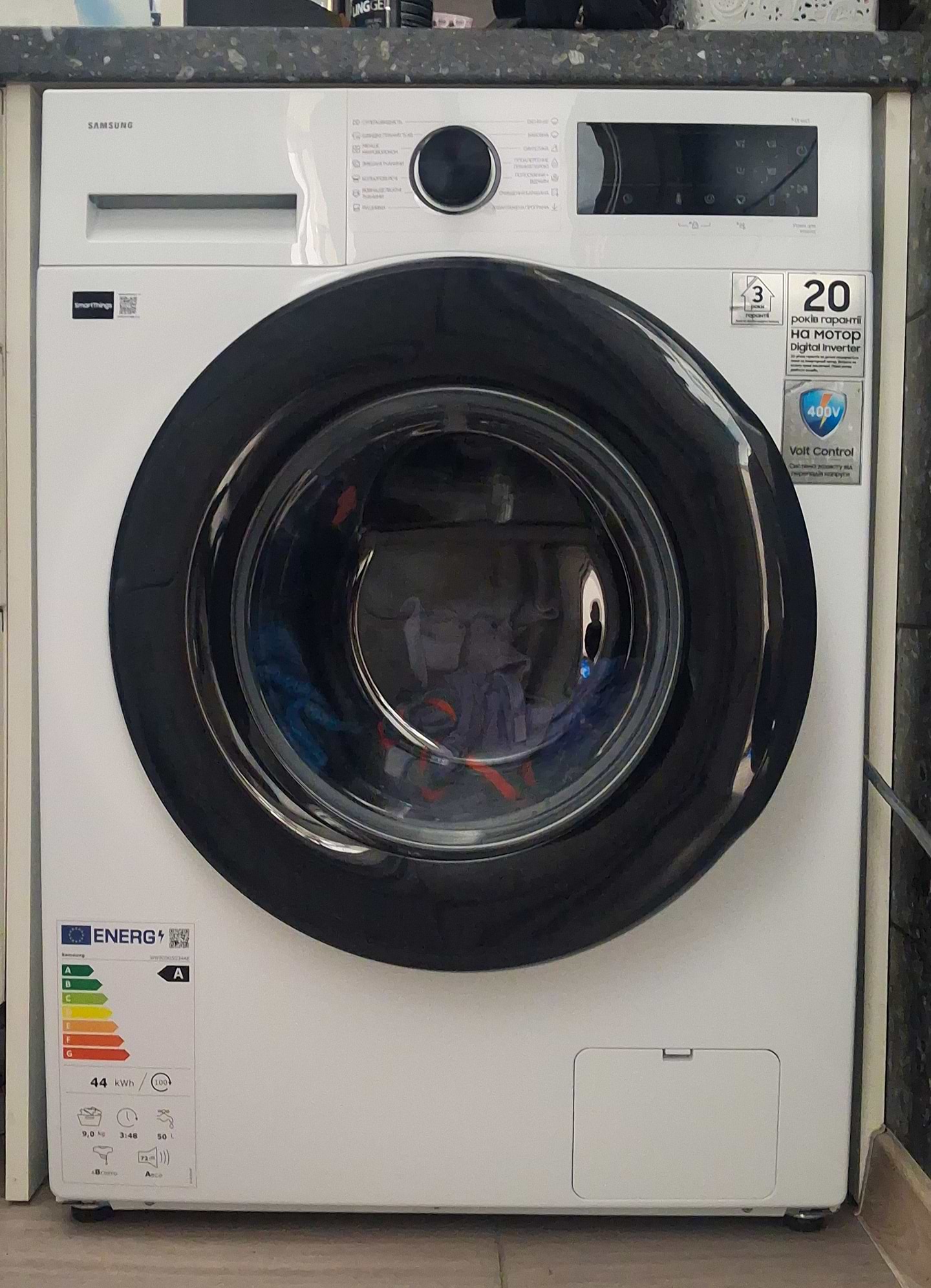 Дуже гарна модель для нашого нового місця проживання. Не було ніяких проблем з установленням, машинка економічна і надійна. Дуже зручно керувати нею зі SmartThings. Подобається, що є великий вибір режимів, я найчастіше користуюсь швидкими через відключення світла. Модель універсальна, зверху хочу докупити на неї сушильну машину.