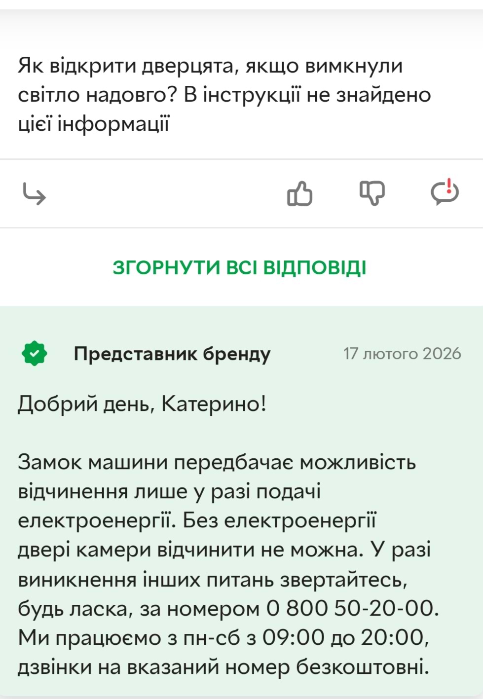 Купили такую машинку, правда в другом магазине. Для сегодняшних реалий Украины - она не подходит! В момент прилетов по электроподстанции у нас была стирка. Свет выключился неизвестно на сколько. Экстренного открывания дверцы - нет! Никакого колечка там где слив, рычажка как в других моделях тут нет! Все эти функции экобабл, пересчета стирки и т.д. - до одного места, когда нет элементарно необходимых вещей! Жаль, что консультанты не рассказывают об этом при покупке. Теперь белье киснеь и воняет в закрытой машинке и на много дней.