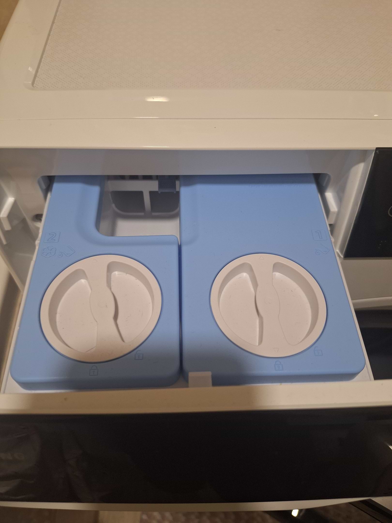 Машинка працює тихо, пере добре, після віджиму речі значно більш сухі ніж у старої машинки. Проте недоліки теж є - дуже електризується і притягує пил як сам пластик так і фарба самої машинки і до неї прилипає пил. Якщо на білих частинах ще не так критично то на дверцятах взагалі дуже помітно. Також якщо захочете користуватись капсулами для прання (в мене багато залишилось запасу від старої машинки) то капсули дуже часто падають у заглиблнення резинки (і розчиняються погано) під дверцятами хоча і користуюсь як сказано у інструкції - кладу у кінець барабана і до завантаження речей. Також сенс мобільного додатку крайно сумнівний і незручно користуватись.