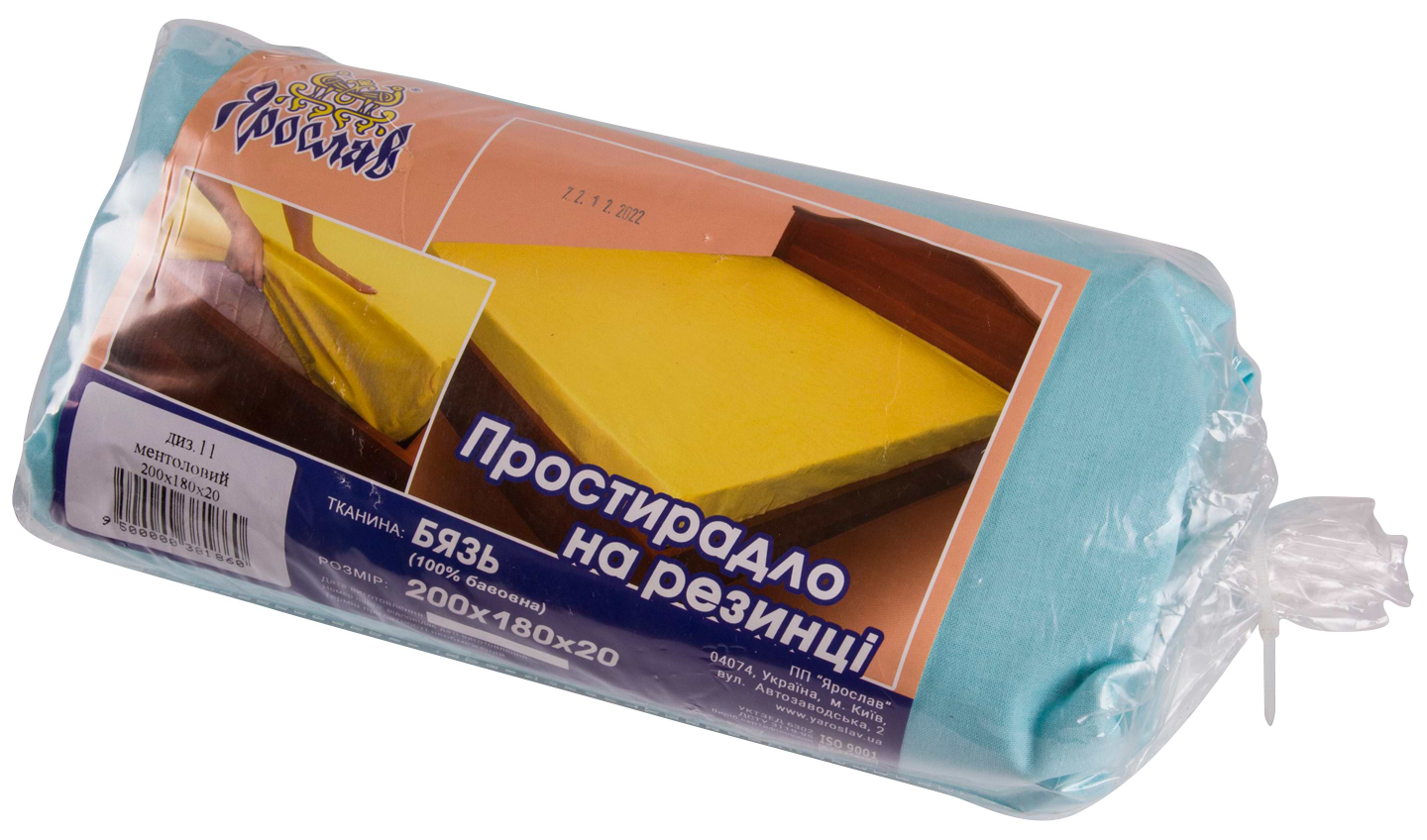 Простирадло двоспальне Ярослав на резинці бязь 200х180х20 диз.11 (ментоловий) (38186)