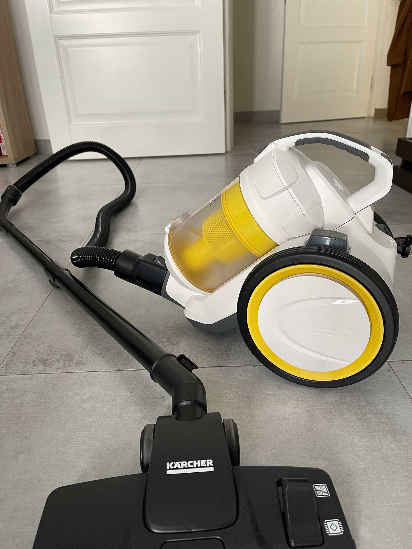 Дуже добре прибирає, різниця з попереднім пилососом відчутна. За тиждень майже не назбиралося пилу чи бруду, тобто ефект чистоти тримається довше. Не шумний, поки не розумію як його правильно носити в руці, щоб не відвалювався сам контейнер з пилом.