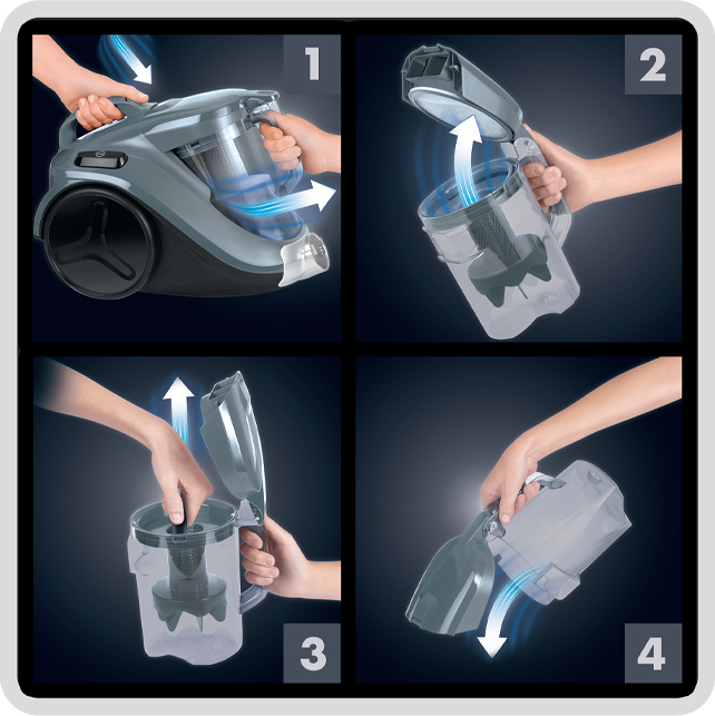Технологія циклон забезпечує високий рівень відділення частинок пилу від повітря - для якісного прибирання і довготривалих результатів