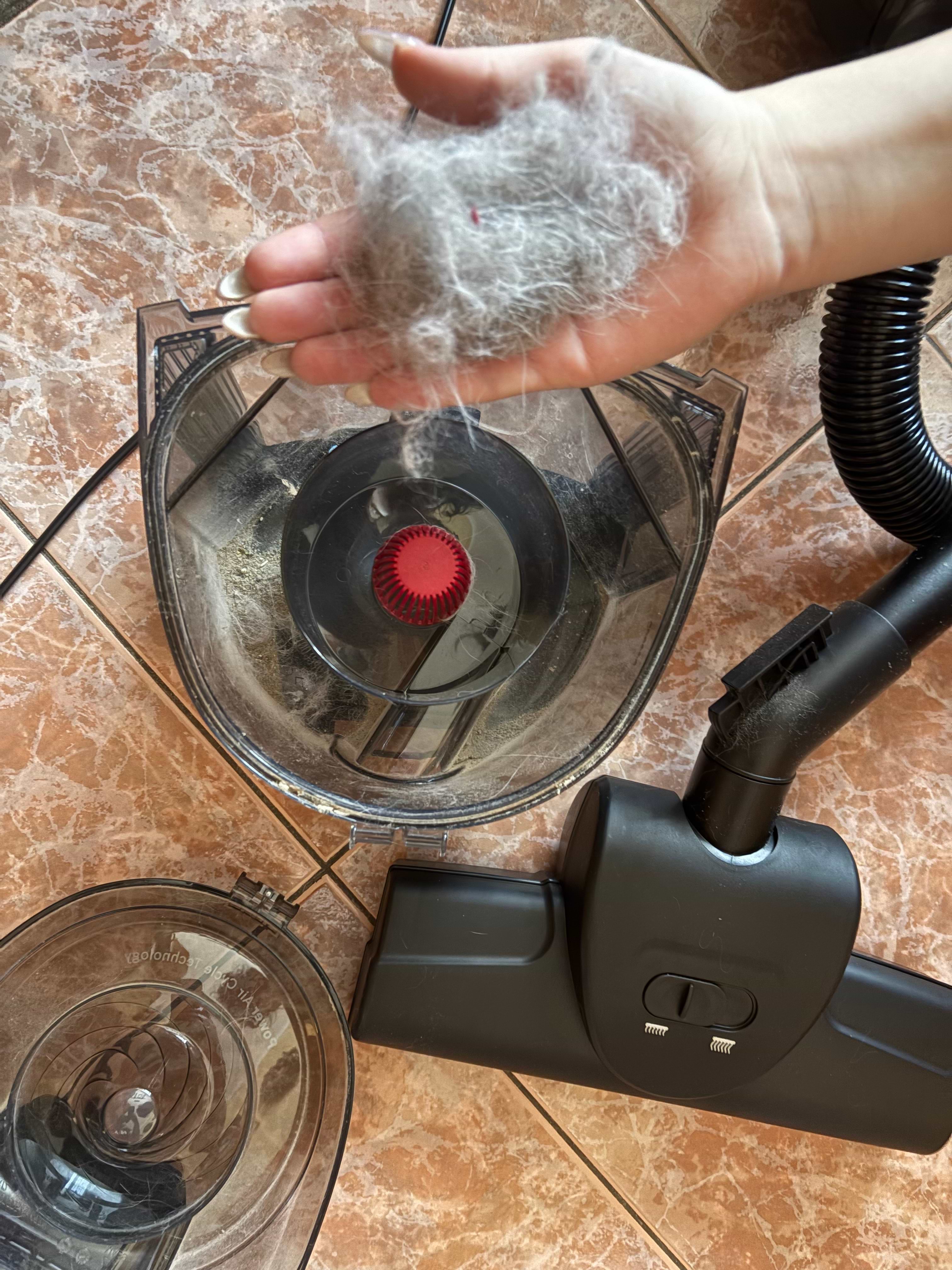 Задоволені покупкою, бо є з чим порівняти! Цікавило швидке якісне прибирання котячої шерсті з ковроліну бо зʼявилося аж пʼять котиків )Пилосос з турбощіткою справляється на всі 100%