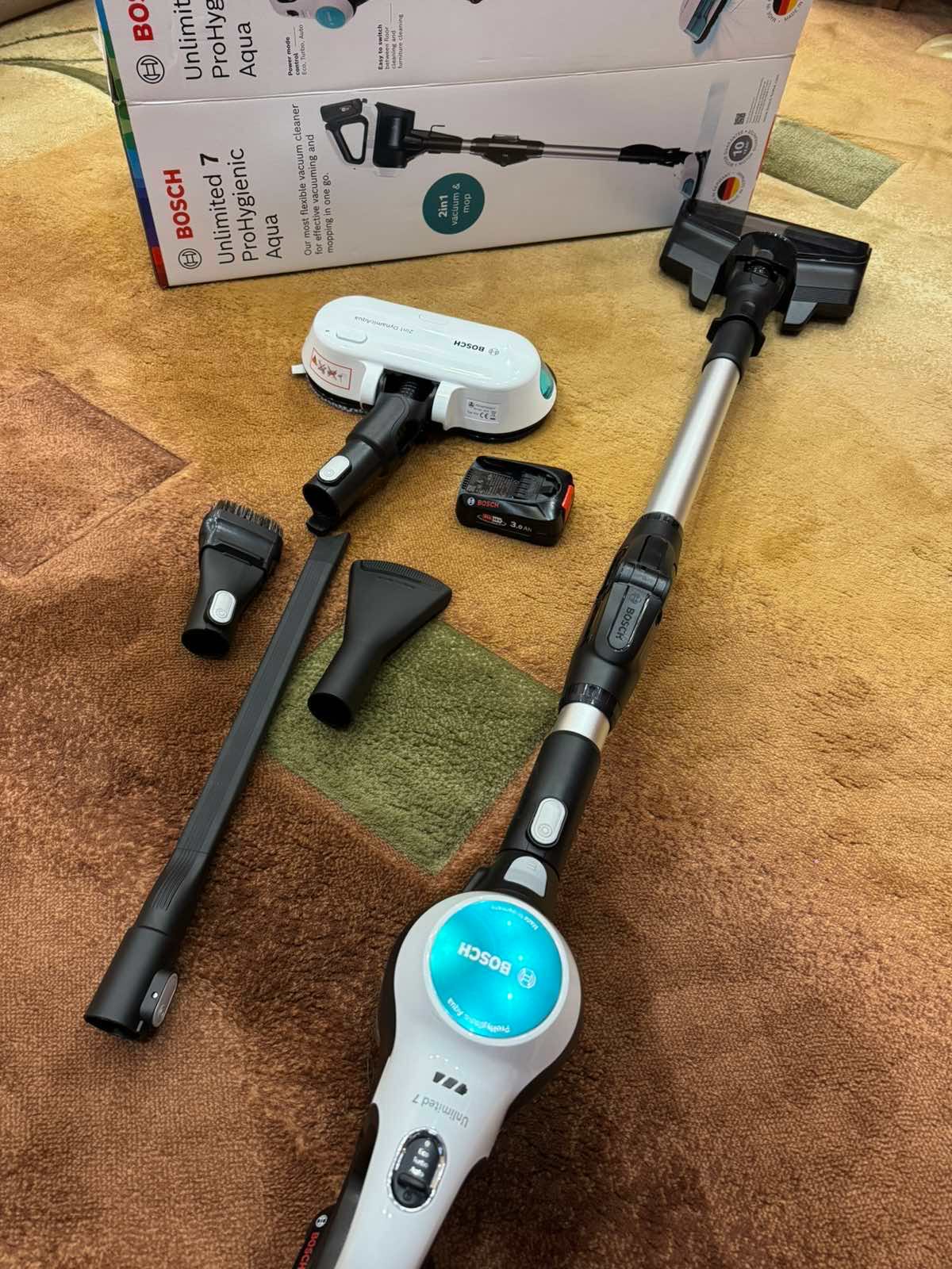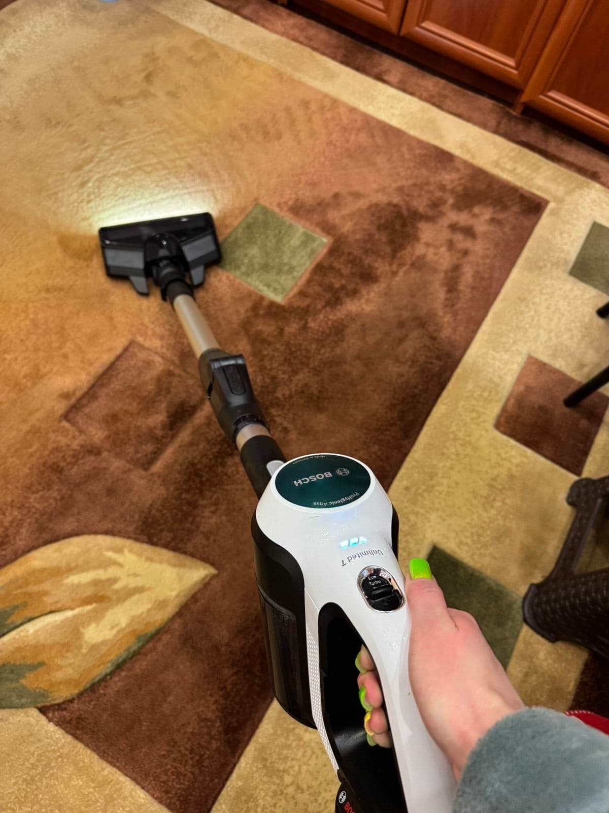 Дуже якісно вбирає пил, підсвітка дозволяє не пропустити жодної пилинки. Подобається, що можна пилососити і мити одночасно. Взяли в комплекті з додатковим акумулятором. Повної зарядки на вологе прибирання в інтенсивному режимі вистачає на площу до 60кв.м.
