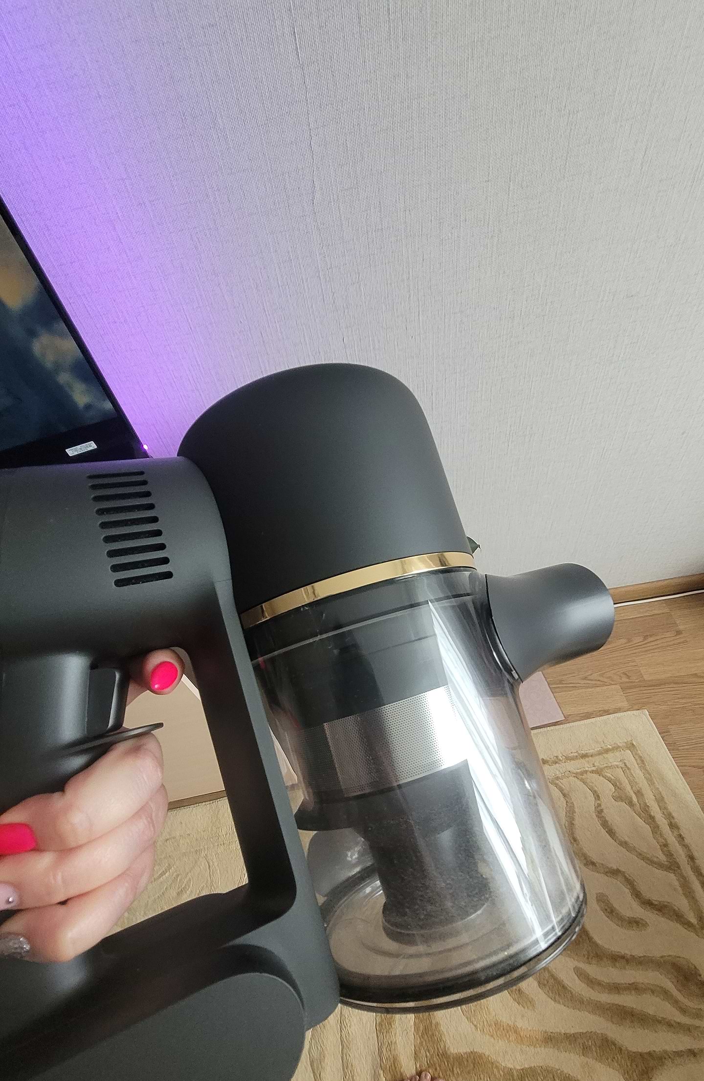 Все супер, дуже задоволена, завжди під рукою, маю 2 коври з невеликим ворсом, чистити супер, тепер я розумію коли писали підлога чиста, а він всерівно щось знаходить, тепер і в мене так))Трішки має ваги, для людей у яких є проблеми з руками (болять руки) він не підійде, давала мамі спробувати сказала їй тяжко, вона б не змогла ним користуватись...