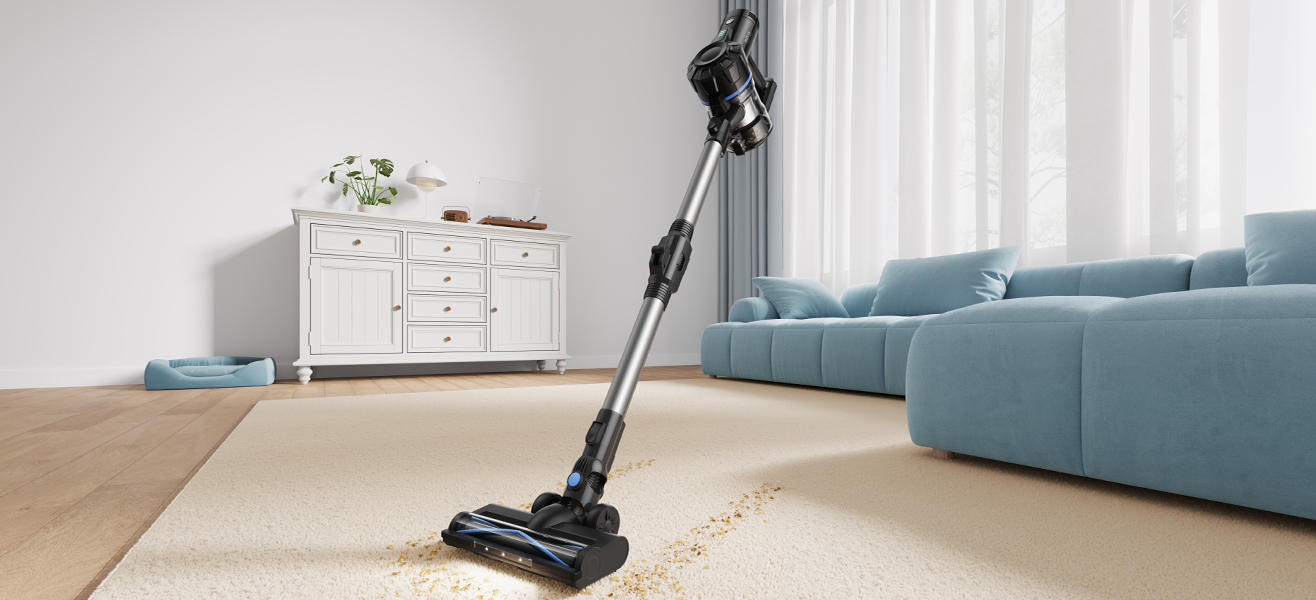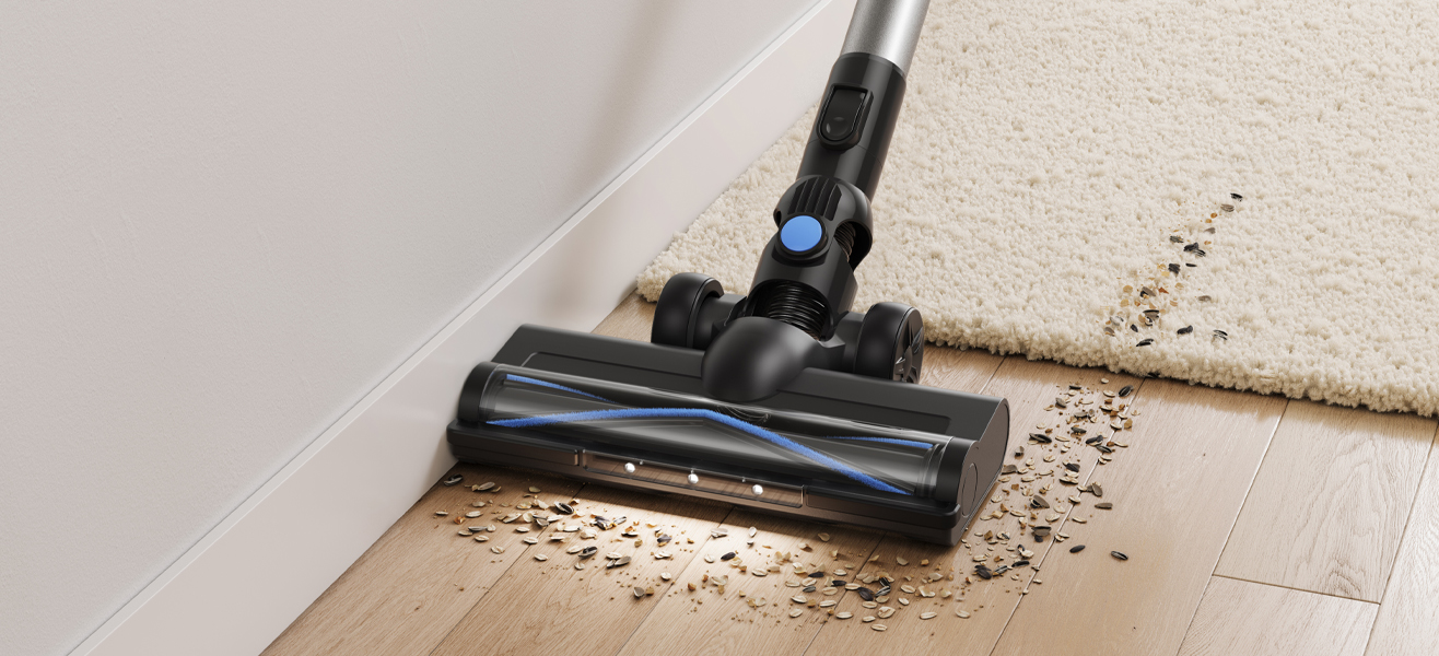 Завдяки потужному безщітковому мотору пилосос ефективно всмоктує сміття з твердих поверхонь і килимів, справляючись навіть із шерстю домашніх тварин.
