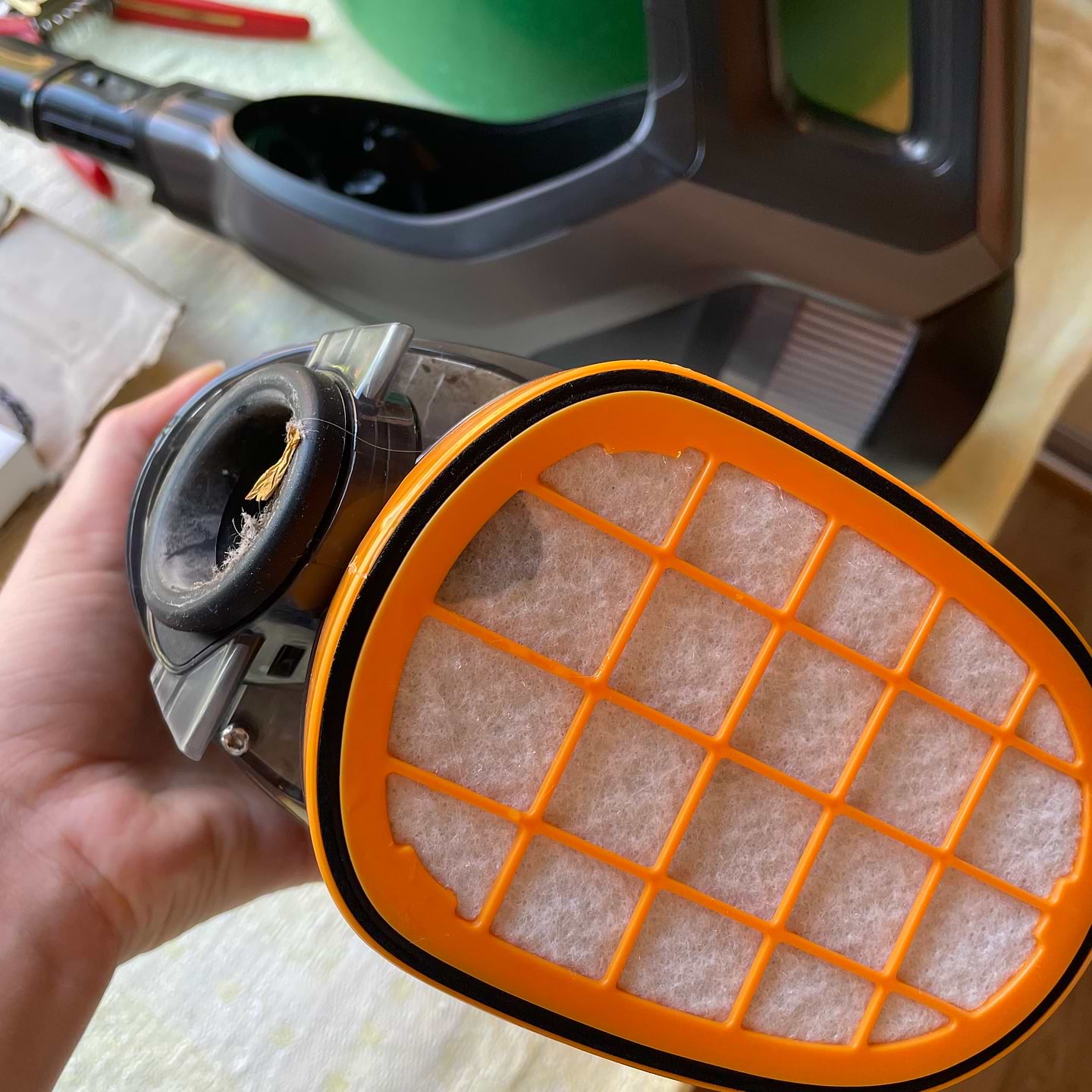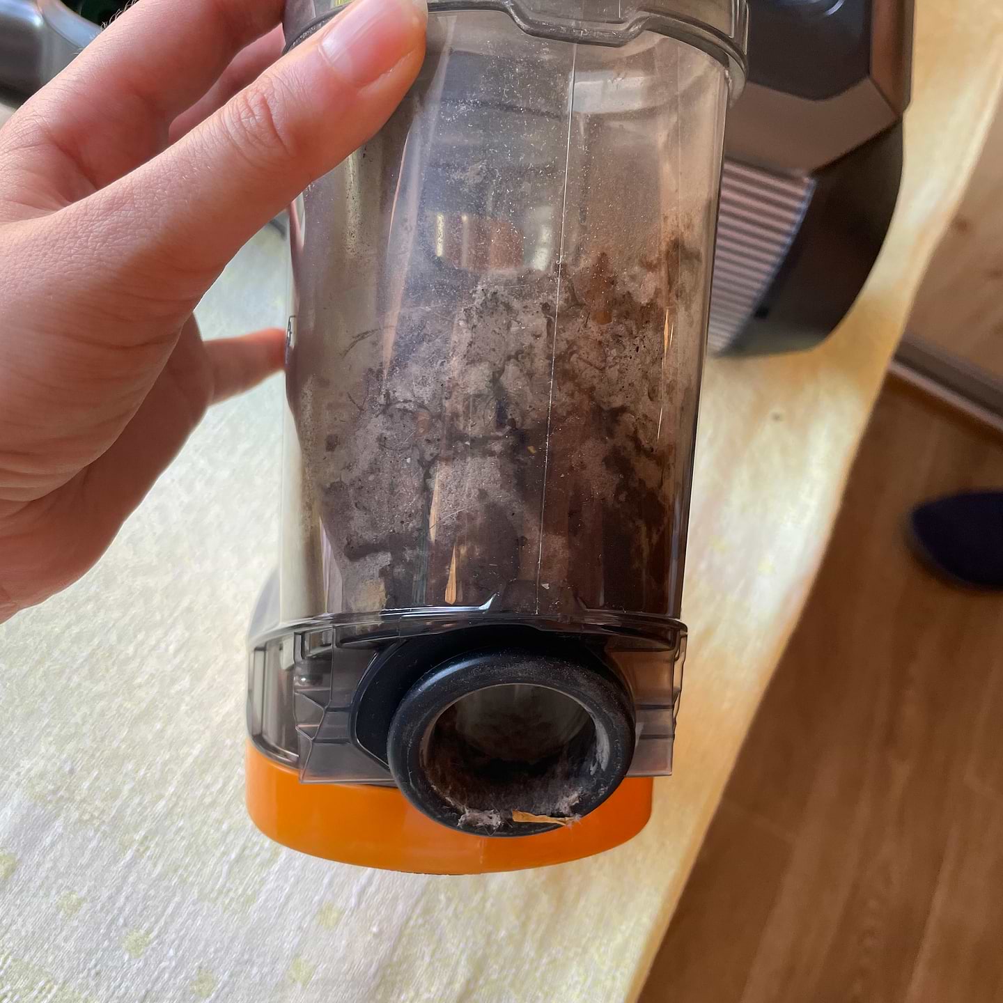 Досвід використання 1 тиждень. Насадка для сухого прибирання справляється зі своїм завданням на всі 100%. Чудово прибирає під ліжком, килим, паркет. Підсвітка дуже сподобалась, одразу видно де ще треба прибрати. Стосовно миючої насадки дещо неоднозначні відчуття. Пропилососивши нею 3 кімнати, на останній кімнаті помітила що підлога залишається не вологою, а досить мокрою… Зняла тряпочку для миття і з неї просто капала вода. І це при тому що я заповнила резервуар для води на половину. Потім я зняла відсік з пилом, щоб прочистити його і побачила воду і під ним і в ньому (фото додаю). Я не думаю що так має бути. Напевно через велику кількість води яка подається на тряпочку, вода всмоктується в сам пилосос і фільтр і там все мокре. Може треба віджимати тряпочку після кожної кімнати? Але я б хотіла просто взяти пилосос і прибрати квартиру, не зупинятись після кожної кімнати… Але з плюсів скажу, що ця насадка дійсно класна, після неї не потрібно додатково мити підлогу. Тобто ти одним рухом робиш дві справи. Це значно економить час. Пилосос розрядився на 40% на 2 швидкості за прибирання 3 кімнат. Дуже потужний і зручний. Але стосовно мокрого в середині пилососу хотілося б отримати відповідь представника фірми. Бо по-перше, в мене паркет і від надлишку вологи він може зіпсуватись, а по-друге, не думаю що вода в середині самого механізму і фільтру це окей.