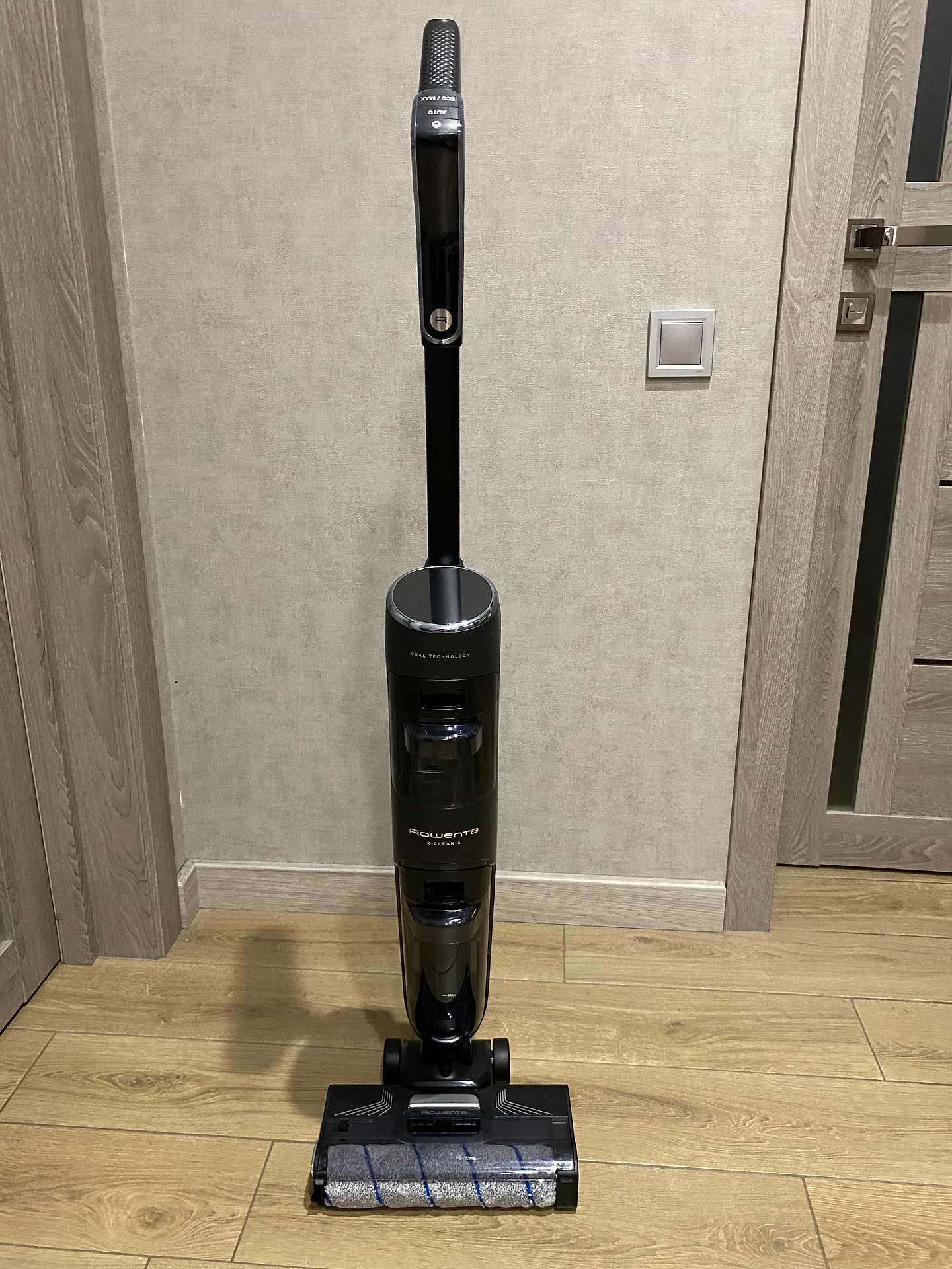 Щодо прибирання то вже повністю озброєні усіма приладами від Rowenta. Техніка в них якісна та довговічна. Оскільки дружину не дуже влаштовувало як миє робот, то придбали ще цього агрегата. Тут звичайно рівень іншій, оскільки він саме призначений для цього. Тестували його теж на прибрання сирого яйця заради інтересу, він супер впорався, і сліду не лишилося. Весь бруд збирається в окремий контейнер, тому після прибирання його очистити не проблема. Насадка спочатку сама очищається на базі, а потім її можна помити додатково.