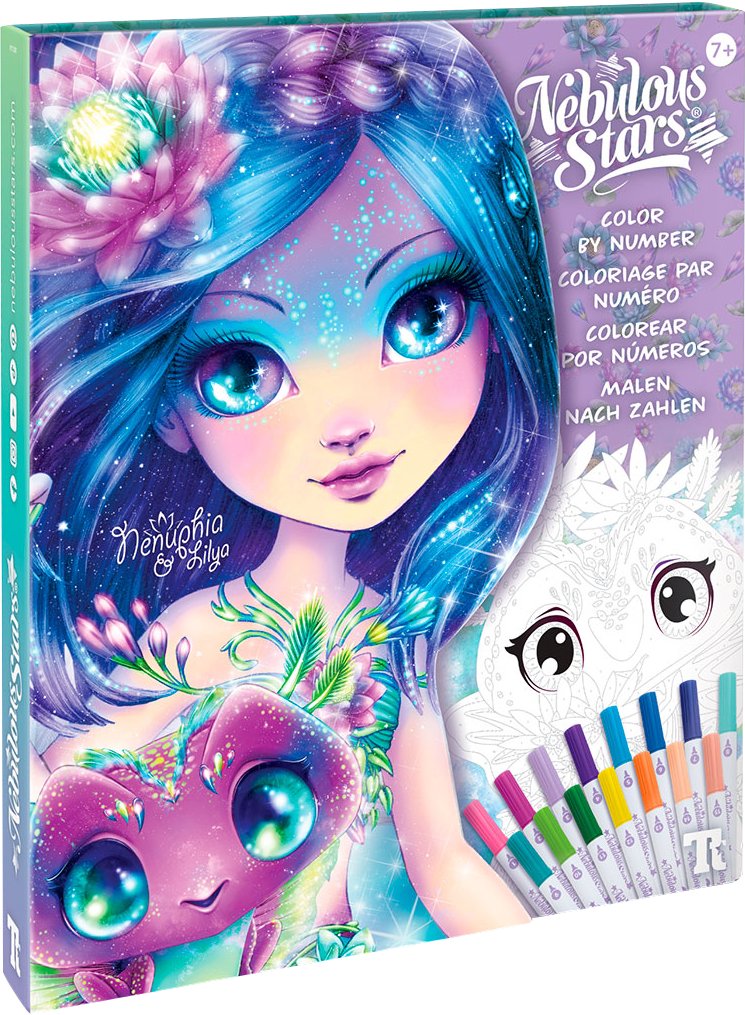 Насолоджуйтесь космічними барвами з набором для творчості NEBULOUS STARS - РОЗМАЛЬОВКА ПО НОМЕРАХ: ЧАРІВНІ СВІТИ ЗІРОК! Оживіть малюнки з персонажами світу Nebulous Stars з допомогою незвичних маркерів у техніці картина за номерами! Пориньте у творчий політ космічним світом разом з Ненуфією та її чарівною улюбленицею Лілією. Мандруючи подумки у зоряних світах, ви можете створити неперевершений малюнок. Відчуйте зоряне натхнення!