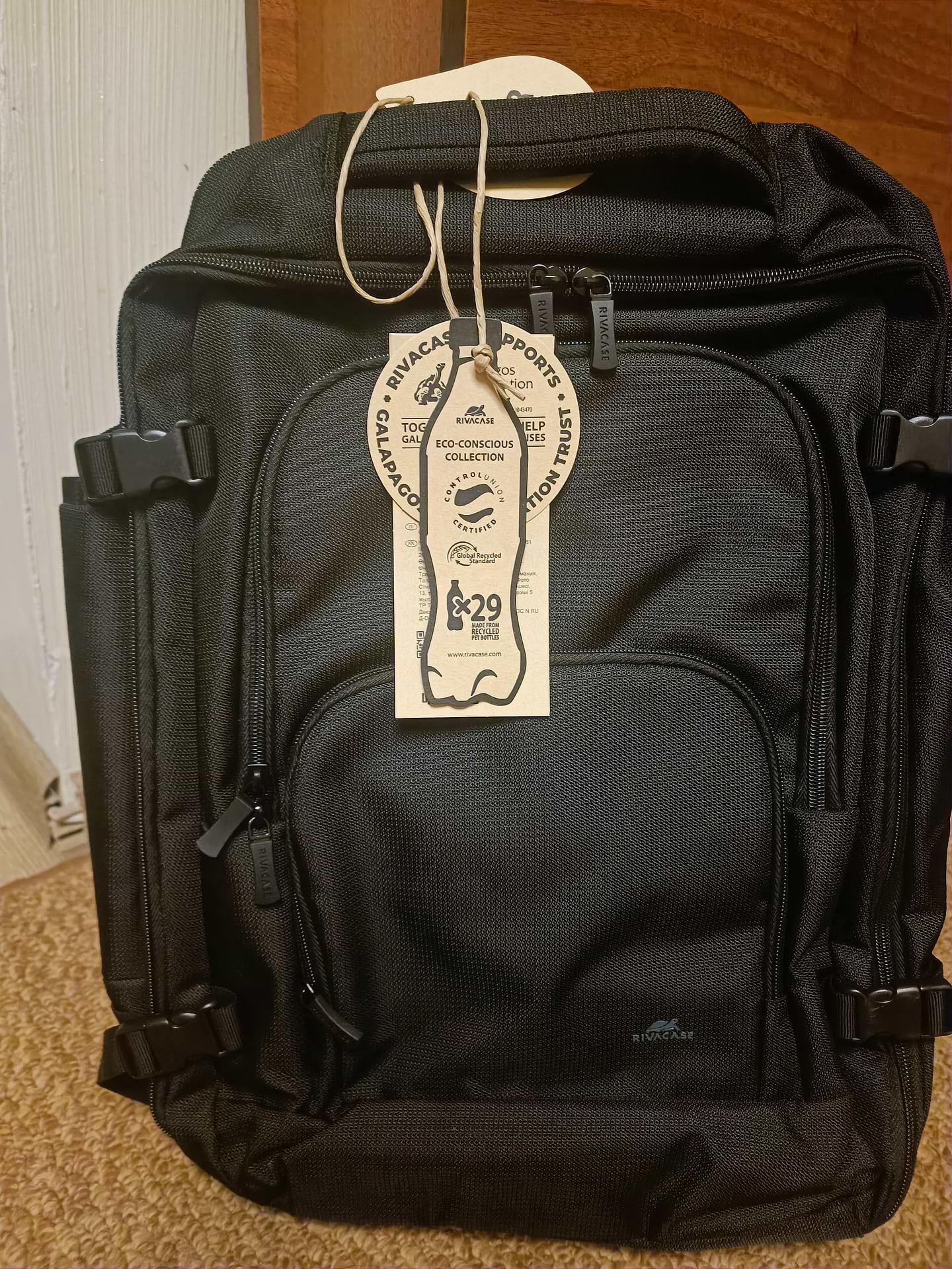 Зручний, міцний, стильний. Зручні ручки, можно носити, як сумку для ноута. Багато відділів, фіксатори розміру.