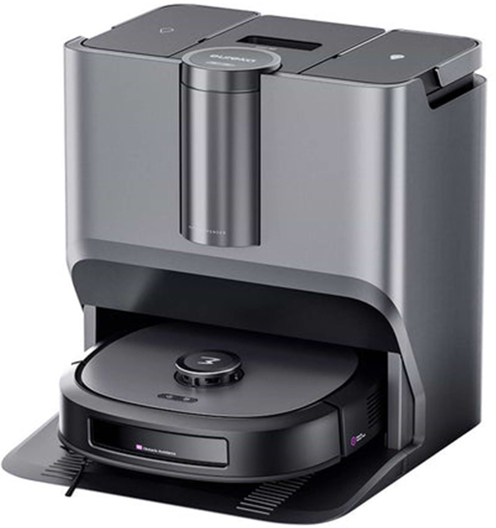 База автоматично спорожнює контейнер для пилу, миє та сушить мийну насадку, а також поповнює резервуари для чистої води та мийного засобу, забезпечуючи до 45 днів автономної роботи.