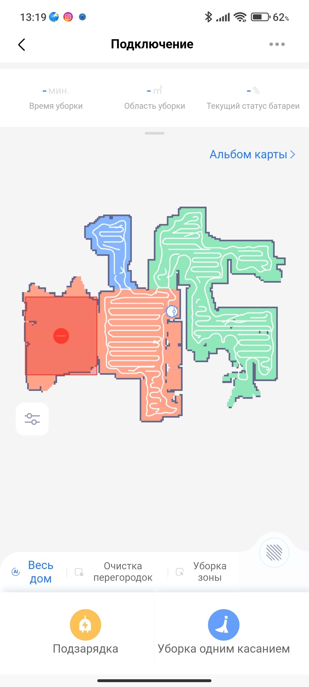 Все прекрано робить! Спершу зробила помилку не дала самосьійно обʼїхати всю квартиру і переносила з місця на місце, потім вирішила видалити з додатку робота та додати його знову. В цей раз не чіпала і дала самостійно завершити прибирання - і вае супер! читала коментарі, що він не миє - вае він миє. Просто спочатку треба залити резервуар водою до максимуму та надягнути ганчірку, а не на пустий резервуар чіпляти ганчірку та запускати повітря у систему. Зона прибирання 35 м кв (деякі місця йому все ж недоступні) і зайняло це рівно 30 хв.