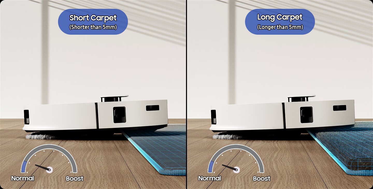 Розумне виявлення підлогового покриттяВідрізнити підлогу від килима може навіть техніка? Це правда, а пилосос Jet Bot Combo може навіть керувати своїми насадками під час прибирання. Підняття або повне відокремлення насадок для вологого прибирання допомагає уникнути ще більшого забруднення килимів та їх намокання. А завдяки штучному інтелекту прибирання килимів стало ще кращим через збільшення потужності всмоктування.