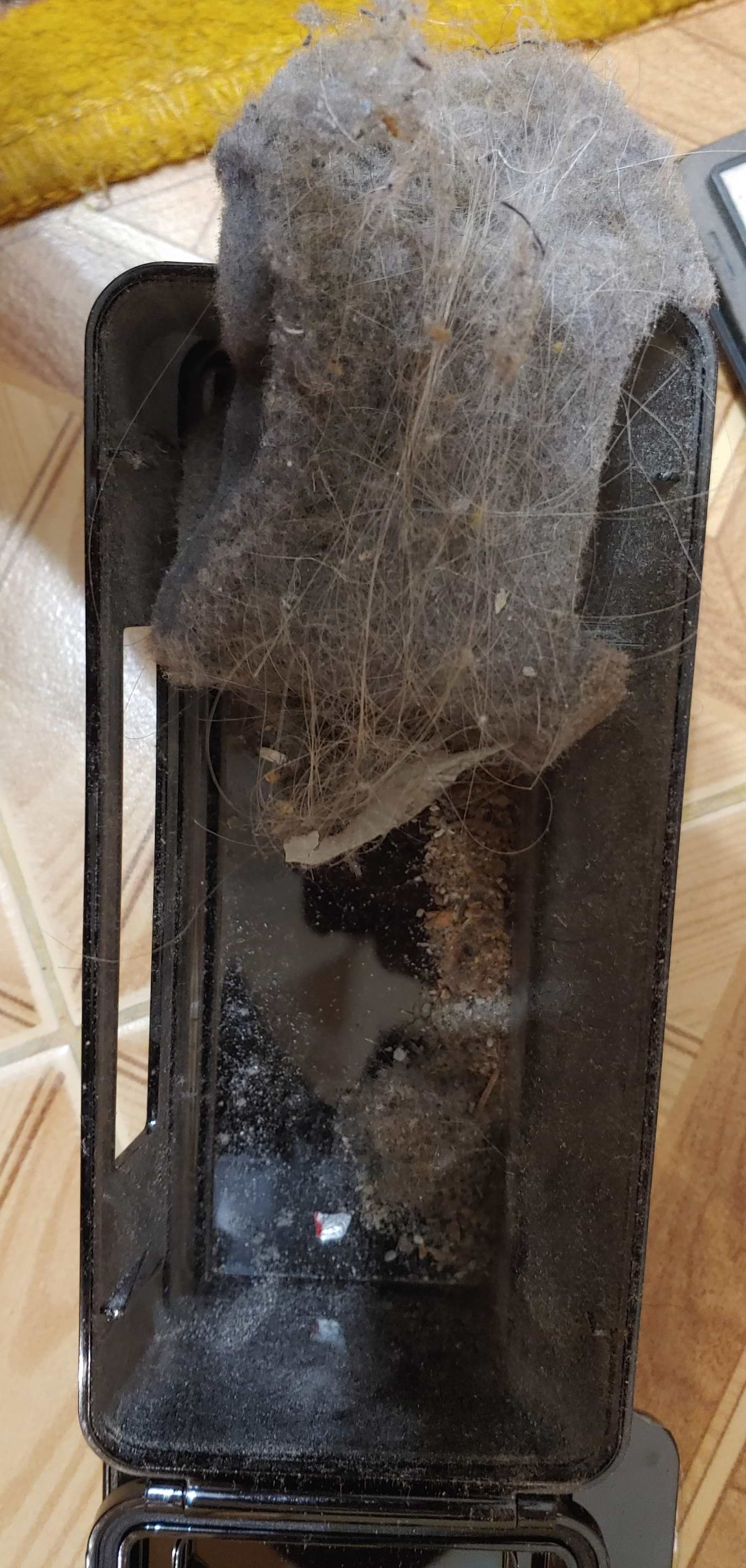 Втягує все - можете побачити на фото. (Це в основному з коврів)