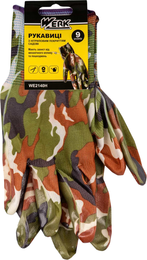 Все про Рукавички садові Werk з нітриловим покриттям хакі з підвіскою (WE2140H)