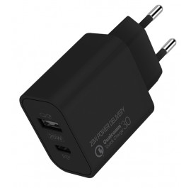 Мережевий зарядний пристрій Colorway Type-C PD + USB QC3.0 (20W) V2 Black (CW-CHS025QPD-BK)