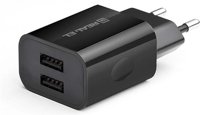 Мережевий зарядний пристрій REAL-EL CH-210 Black (EL123160014)