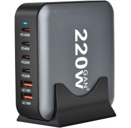 Мережевий зарядний пристрій XOKO Gan3 220W вилка EU (QC-220)