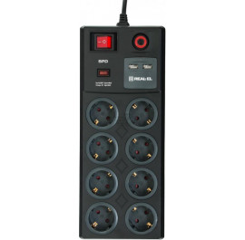 Мережевий фільтр REAL-EL RS-8F CHARGE (8 роз, 2 USB, 3 м) 16А