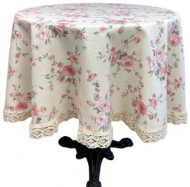 Скатертина кругла Прованс D 200 "Bella" Троянди з мереживом (022112)
