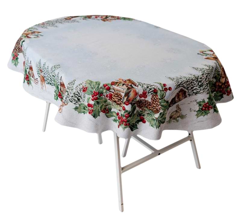 Скатертина овальна Прованс Новорічна гобеленова Squirrel 135х180 см (041763)