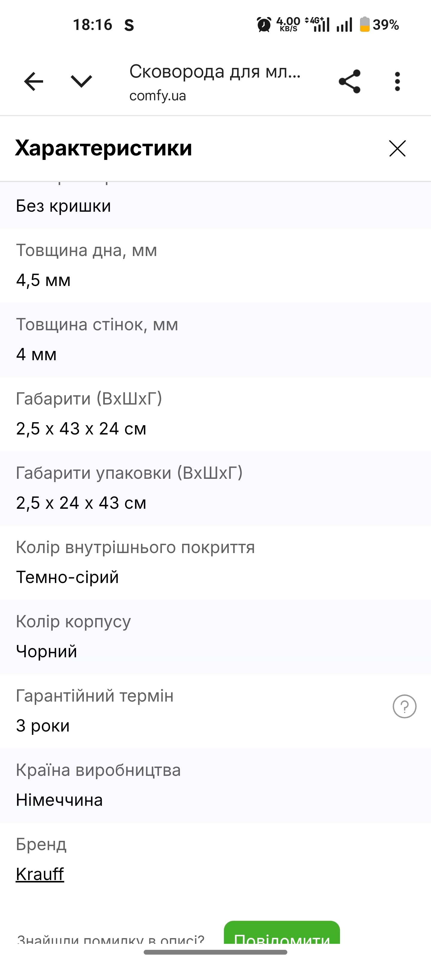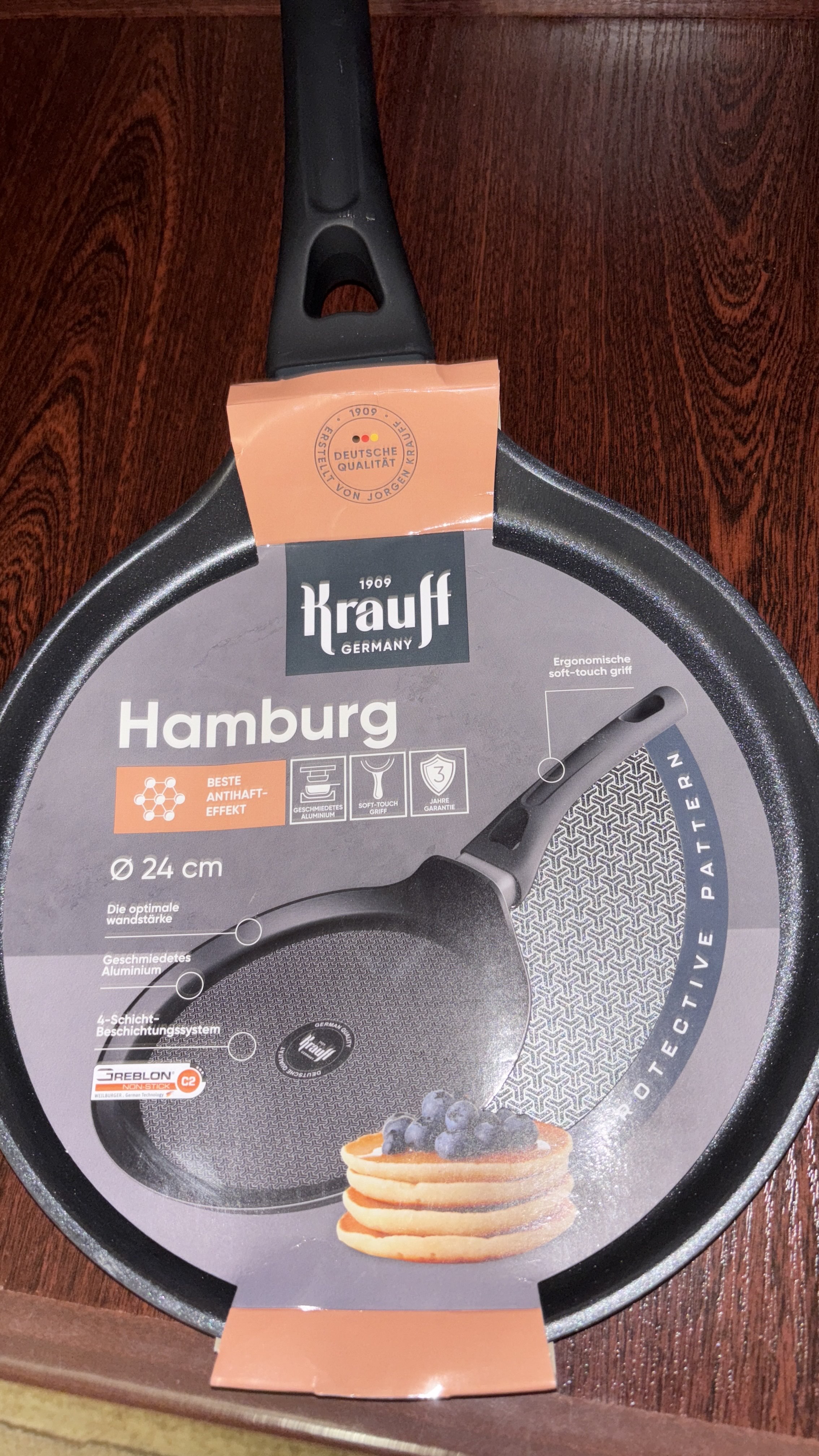 Замовляла по акції, це моя перша тефлонова сковорідка тому не маю з чим порівняти. Обирала потовще дно і лише в цієї сковорідки було прописано 4, 5 мл ну і ще хороші відгуки. Прийшла швидко, гарно запаковано, без дефектів,ще замовила до цієї сковорідки силіконову лопатку цієї ж фірми. Пробувала смажити млинці, оладки, нічого не приставало і дійсно потрібно мало олії. Через рік напишу відгук як у користуванні.