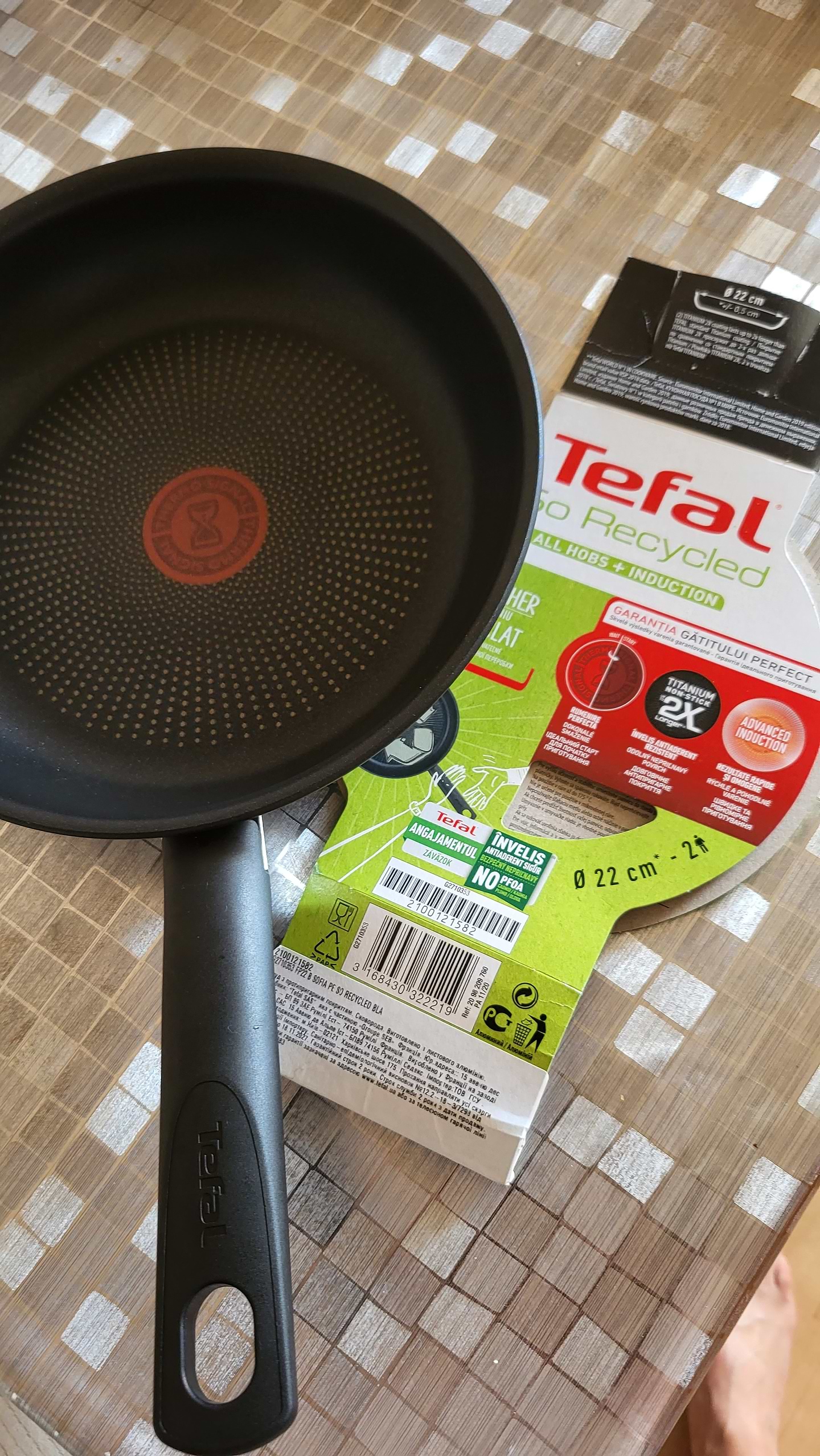 Я дуже задоволена покупкою дійсно якісною сковородою. Сковородами Tefal користувалась дуже давно. А останнього разу вирішила зекономити купила іншу більш дешевше- і пожалкувала. Скупий платить більше. Доки не купила цю сковороду - не заспокоїлась. Розмір 22 см - середній Кришка на неї тільки іншого виробника. Підібрала також у Comfy.