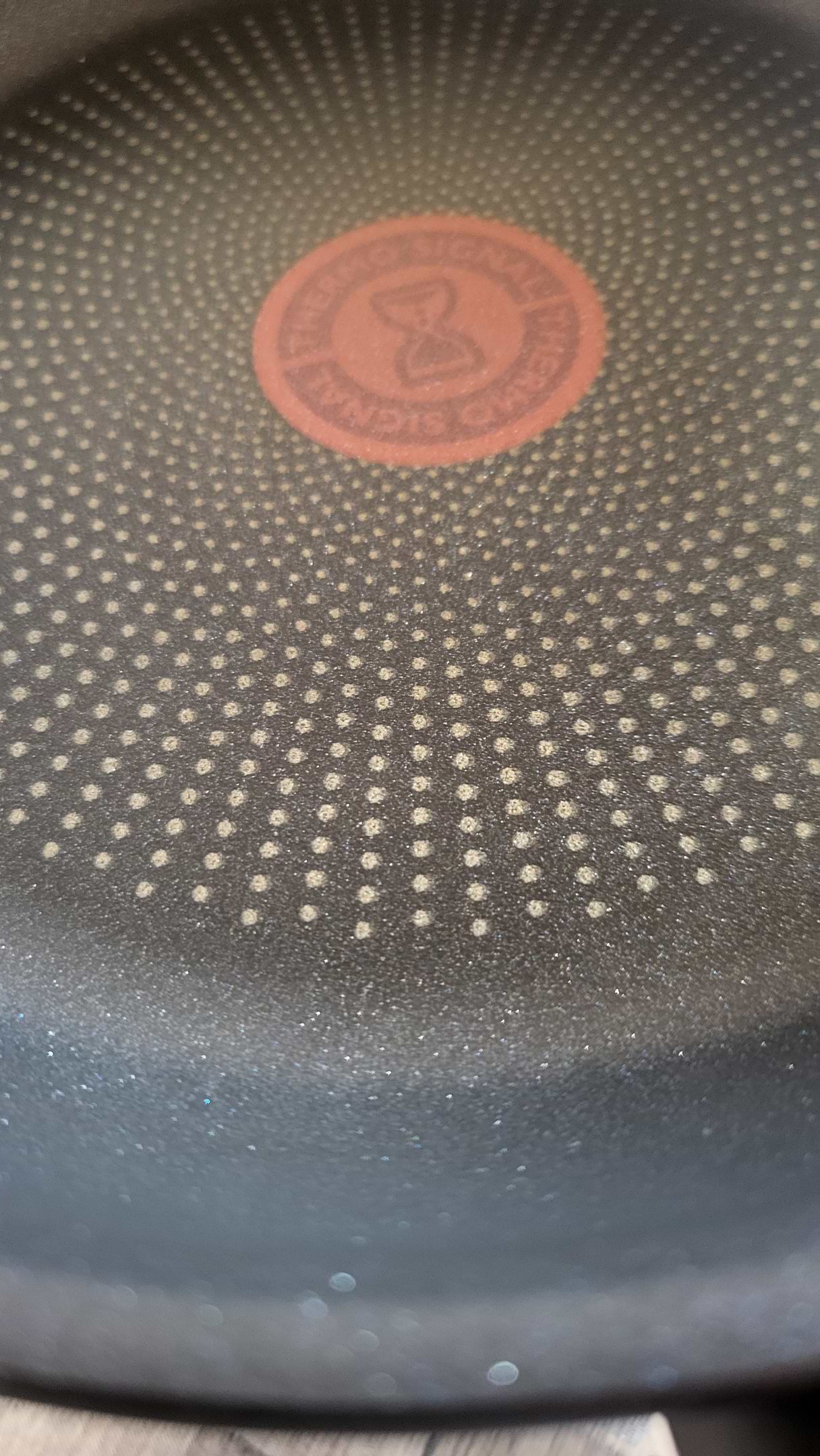Відмінна сковорода, готую на ній кожен день, нічого не пригорає, краю сковороди високі, зручно все перемішувати. Дизайн, як завжди, зверху