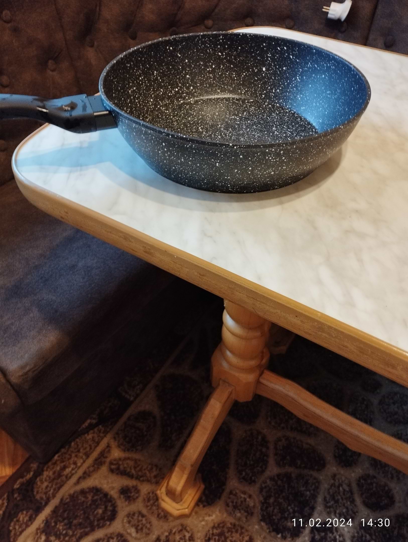 Не знаю, в чому справа, але їжа в цій сковороді не смажиться, а тушиться. Посмажити мʼясо практично нереально! До того ж після 2 міс користування почало лущитися дно (в посудомийці не мила, металом не шкрябала).