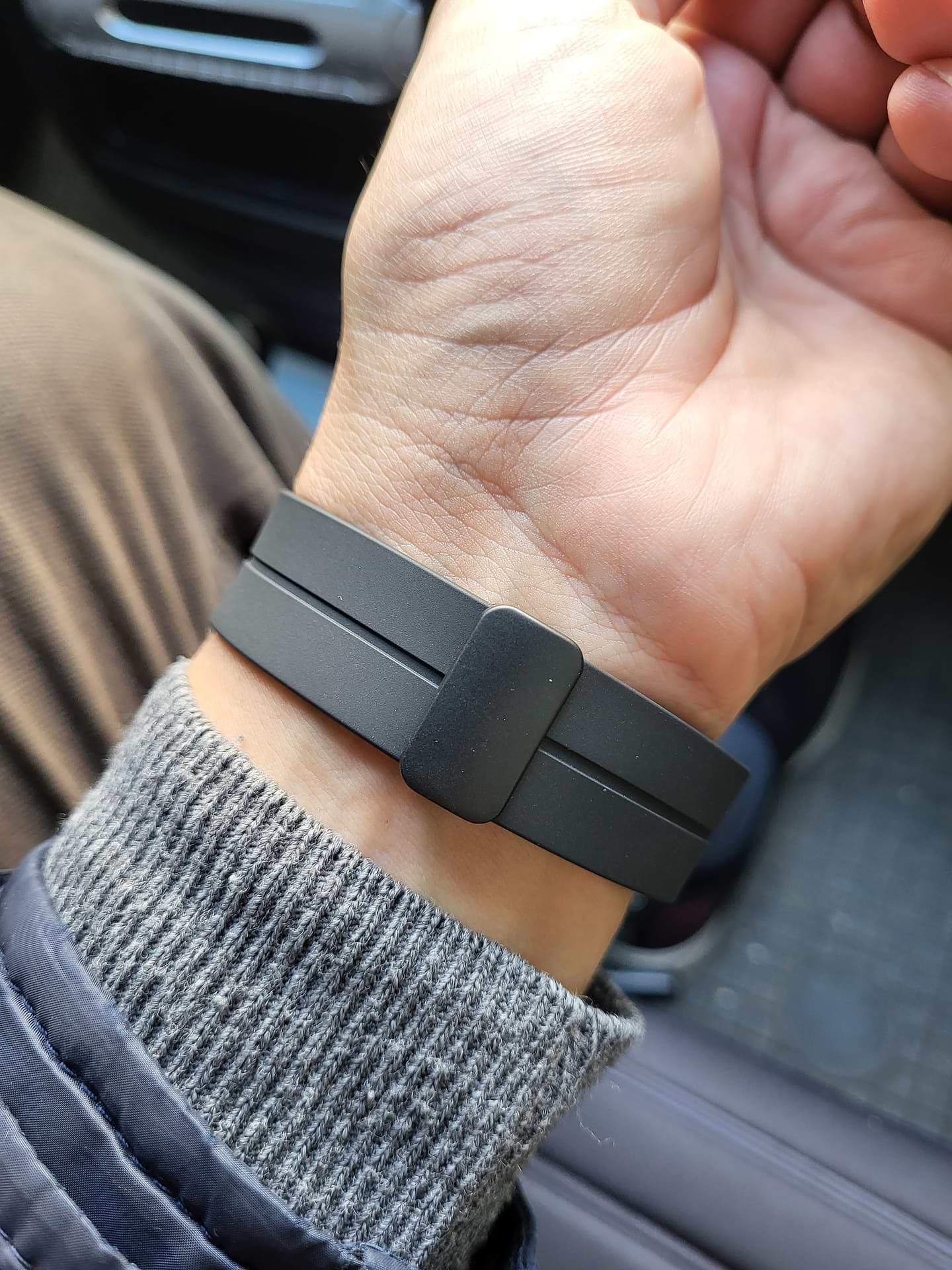 Неможливо зі стоковим ремінцем заряджати на безпровідних стендів самсунг, ремінець не вигинається.